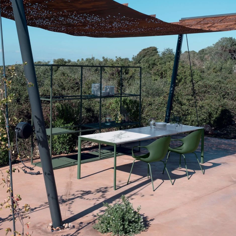 Fabriqué en plastique rigide. Pieds avec insert en feutre pour parquet disponibles sur demande.