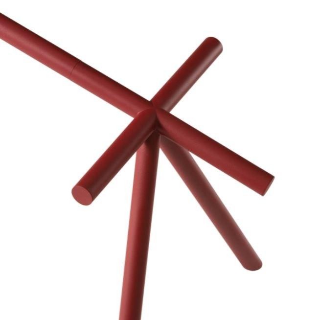 W est une table avec un plateau en verre trempé qui met en valeur la structure du piètement, un tube central en acier peint époxy et deux pieds à insertion rapide et facile pour une finition parfaite. Structure en fer. Plateau en verre transparent de 12 mm.