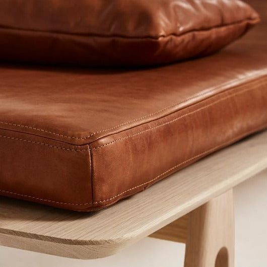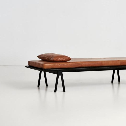Accordez-vous une pause tout en gardant les pieds sur terre. Ajoutez un oreiller en cuir au matelas pour plus de confort ou pour une touche décorative. Associez le cadre en chêne pigmenté blanc ou peint en noir et le matelas en cuir pour un résultat parfait.