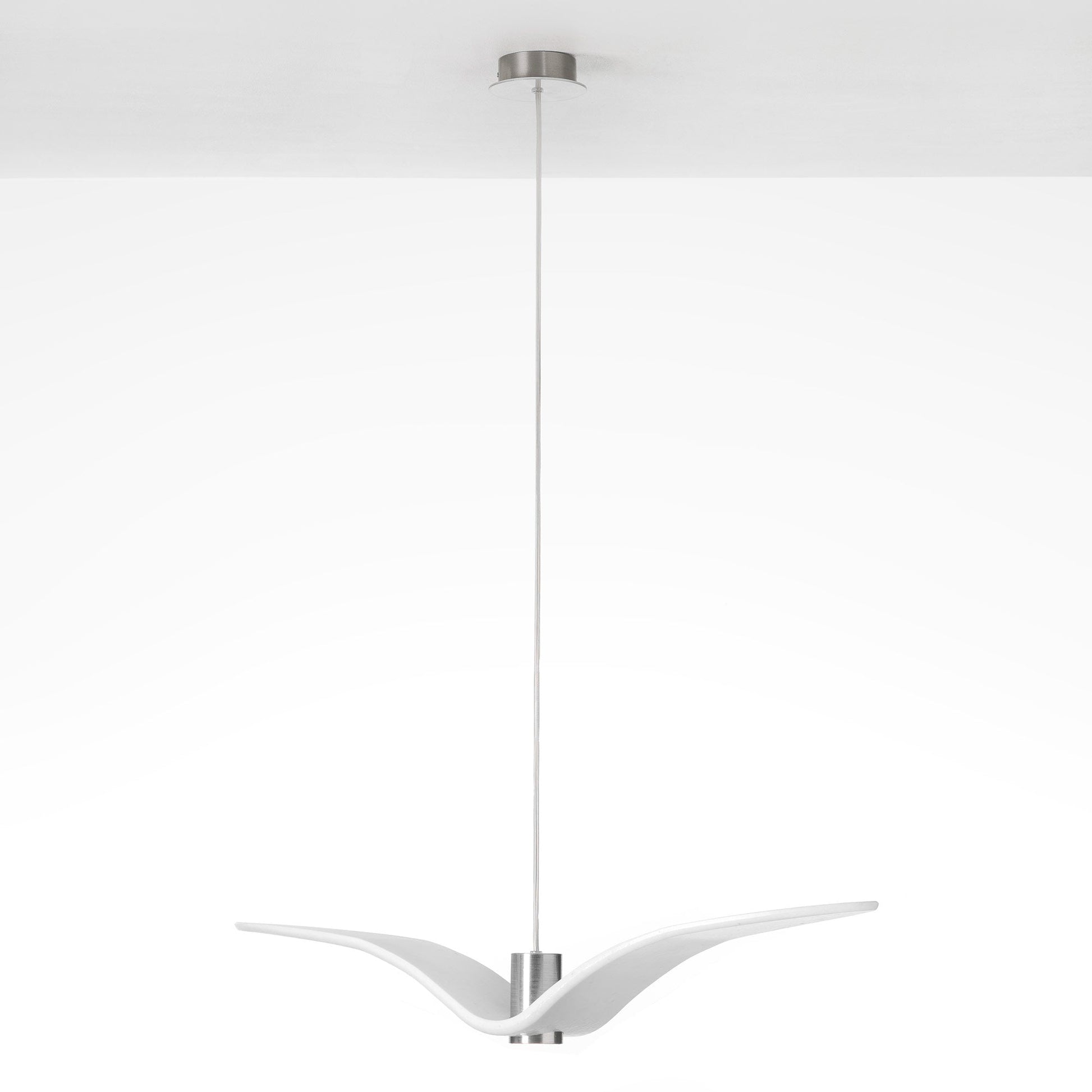 La sobriété et la simplicité de la collection sont soulignées par la source lumineuse LED minimaliste, encastrée dans un corps en aluminium laqué et poli. La collection Night Birds comprend trois luminaires aux ailes différentes, illustrant les différentes phases du vol des oiseaux. Disponibles en blanc et en noir, les Night Birds sont particulièrement adaptés aux grands groupes.