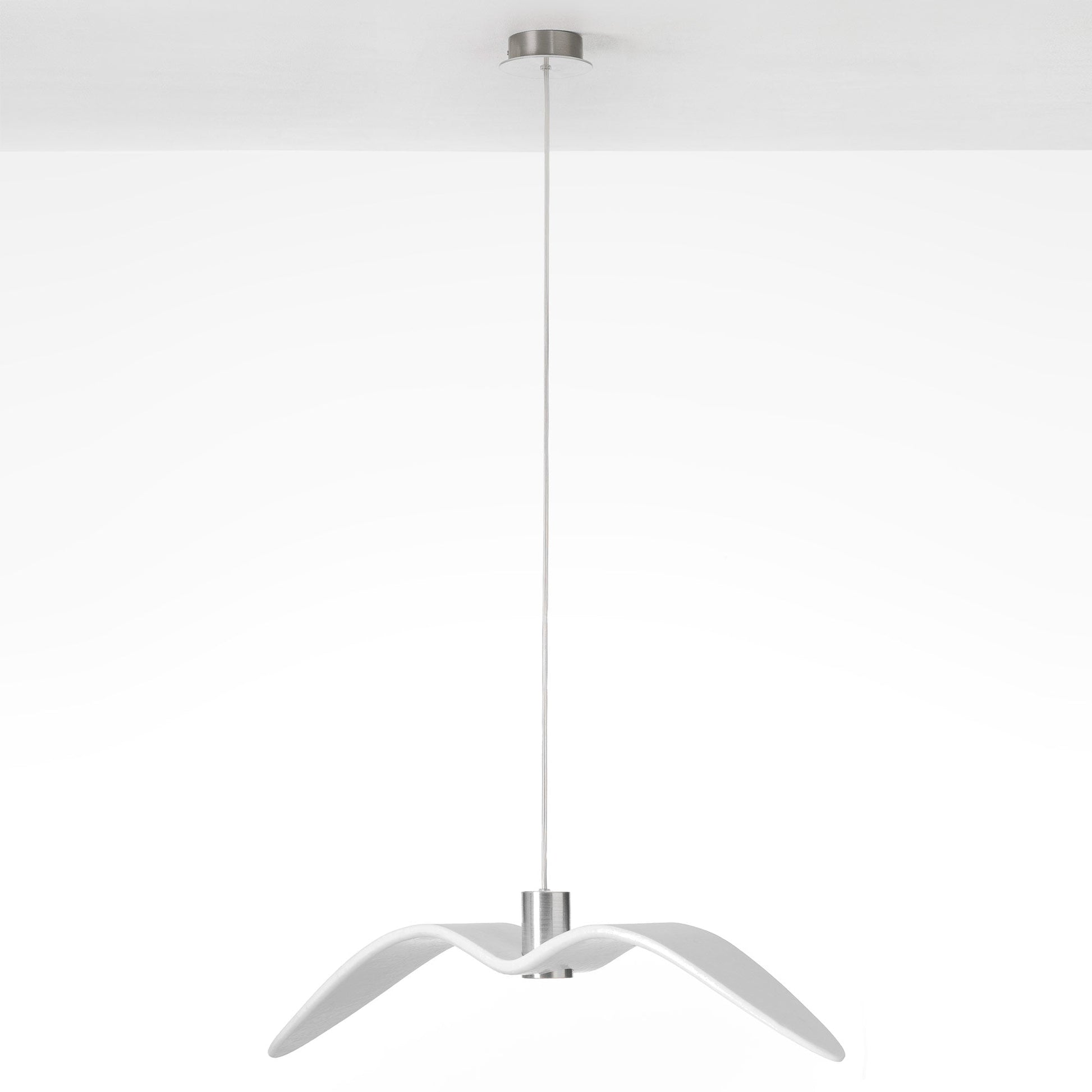 La sobriété et la simplicité de la collection sont soulignées par la source lumineuse LED minimaliste encastrée dans un corps en aluminium laqué et poli. La collection de suspensions Night Birds comprend trois luminaires aux ailes différentes, illustrant les différentes phases du vol des oiseaux. Les luminaires sont disponibles en blanc et en noir. Les Night Birds sont particulièrement adaptés aux grands groupes.