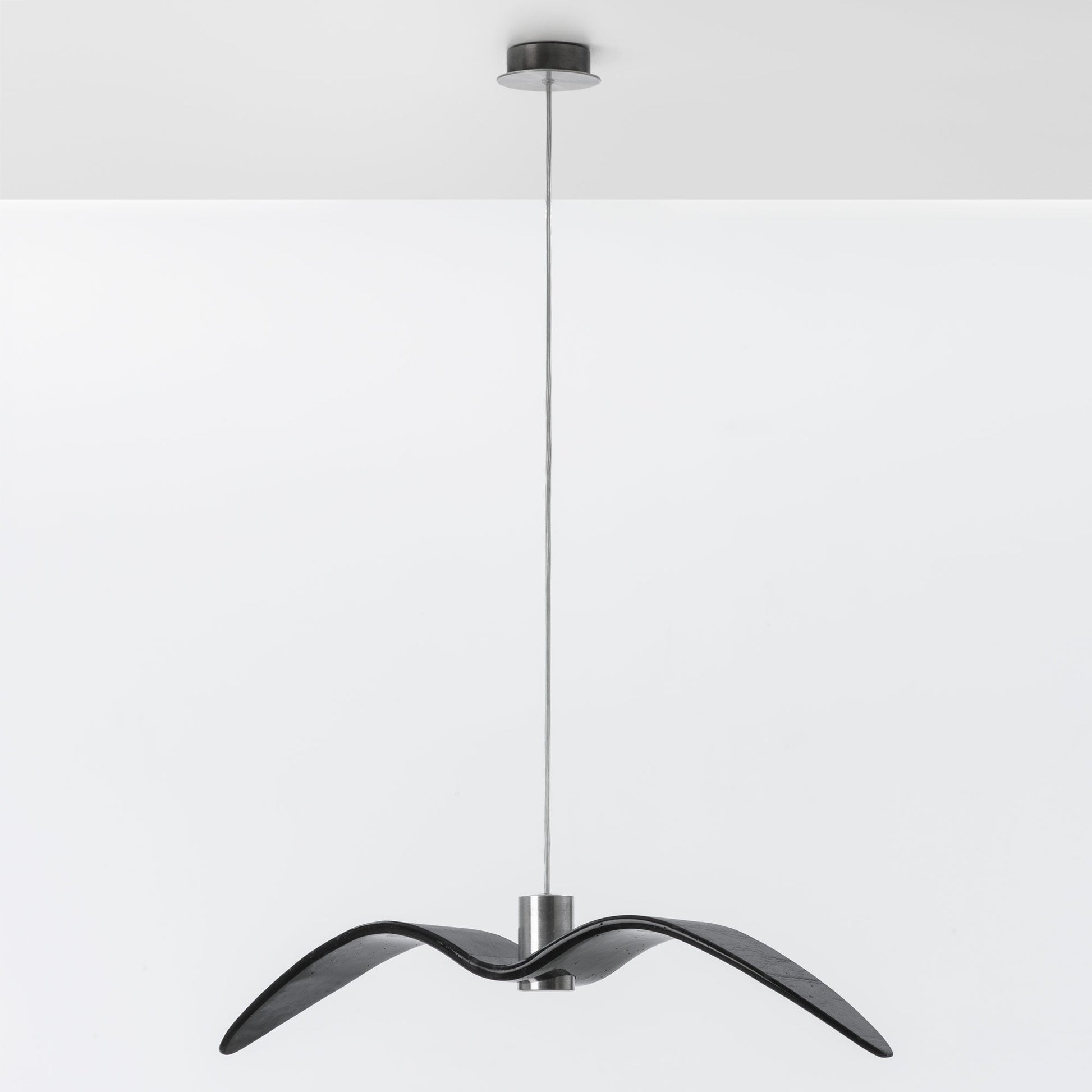 Inspirées par la liberté et l'abandon du vol des oiseaux, les suspensions innovantes Night Birds confèrent à tout intérieur une poésie envoûtante et un dynamisme incomparable. Night Birds se distingue des autres collections par sa technologie de production unique, qui consiste à fondre le verre dans un moule puis à le courber. Ce procédé permet d'instiller de délicates nuances dans la forme des ailes et d'obtenir une coloration du verre à chaque fois différente et unique.