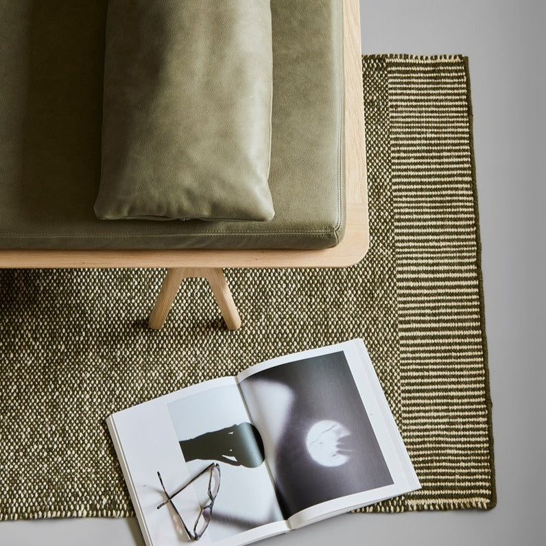 Rombo est une série de tapis conçue par le Studio MLR. Elle se distingue par ses matériaux. L'association de laine et de jute crée une surface robuste. Le tissage forme de petits motifs losangiques distinctifs, qui ont donné son nom à la série. À chaque extrémité, des lignes droites encadrent le tapis, créant un élégant contraste entre les couleurs et les motifs. La série se compose d'un petit, d'un grand et d'un tapis de couloir, chacun dans sa propre couleur.
