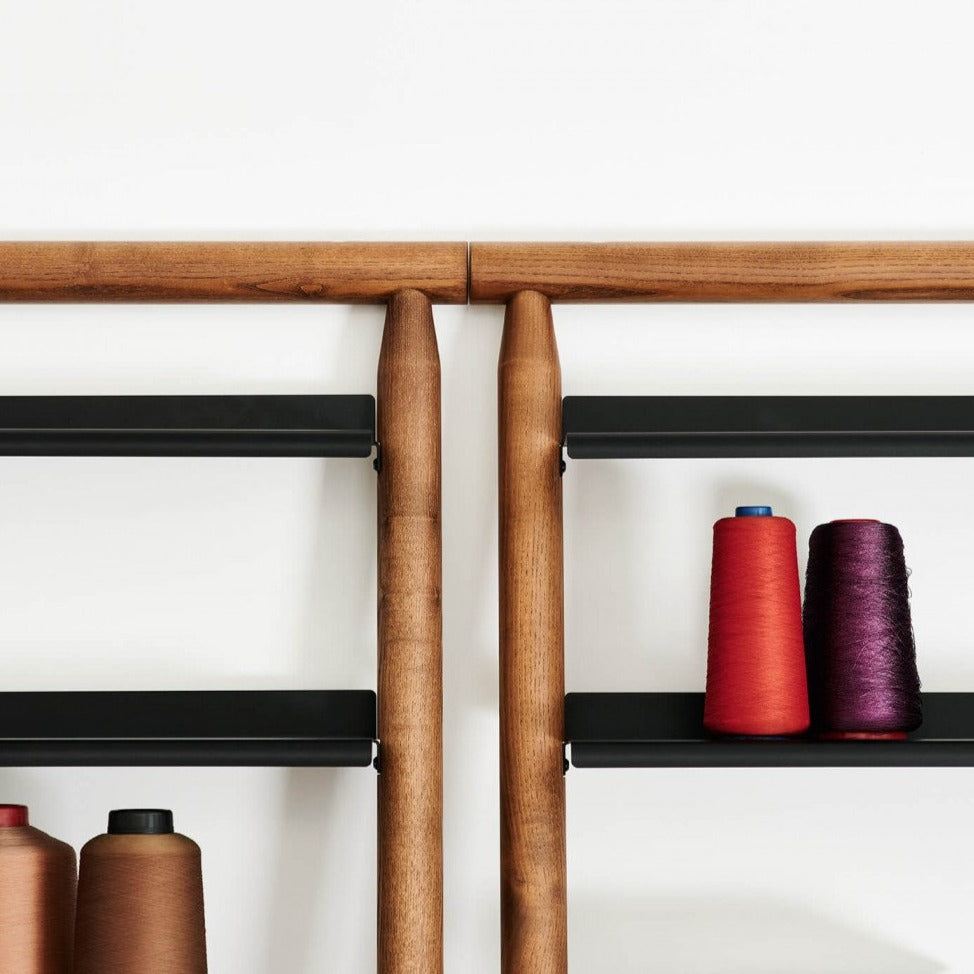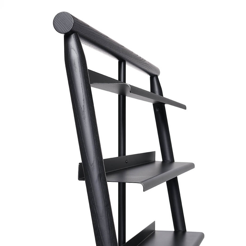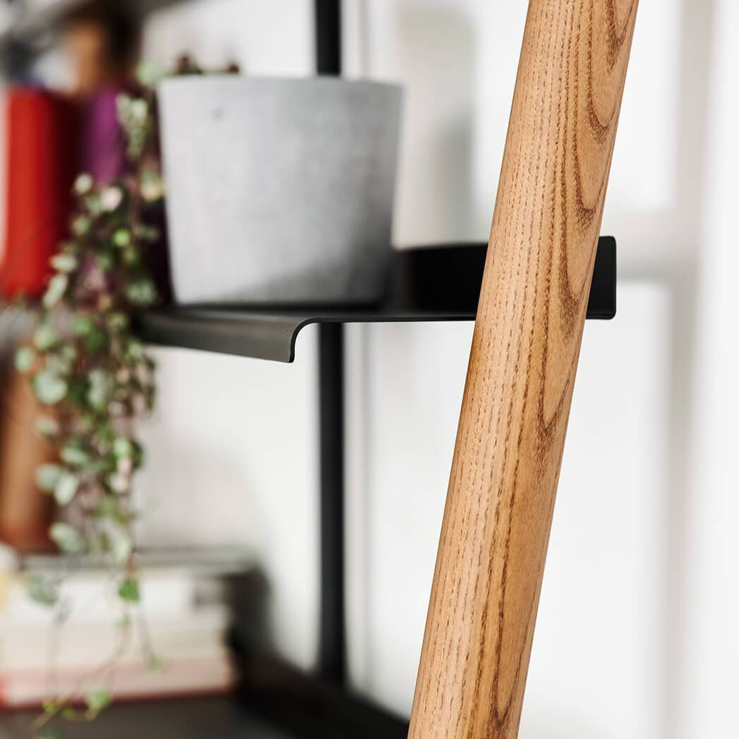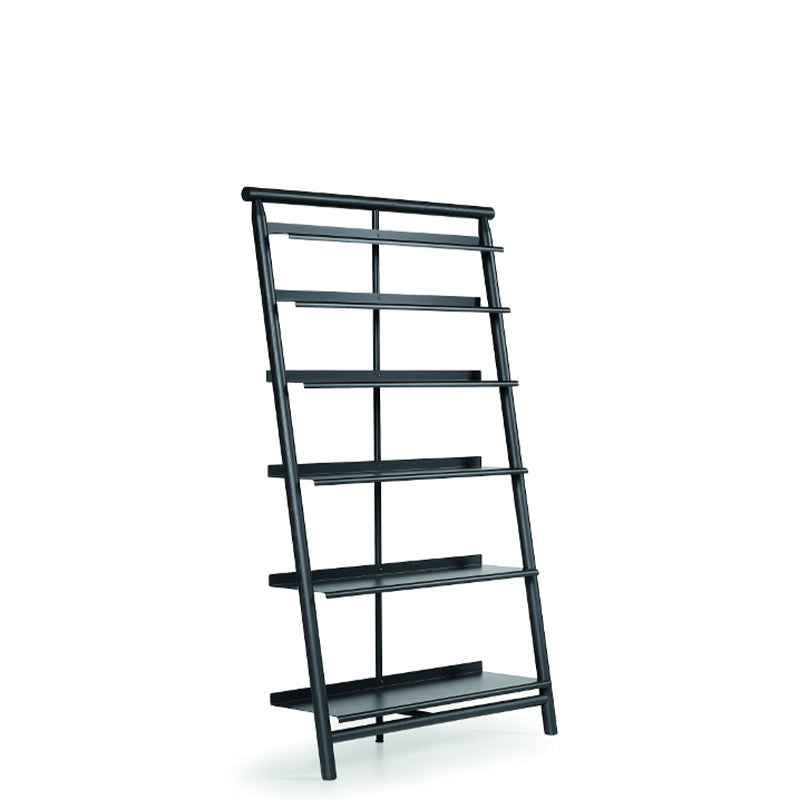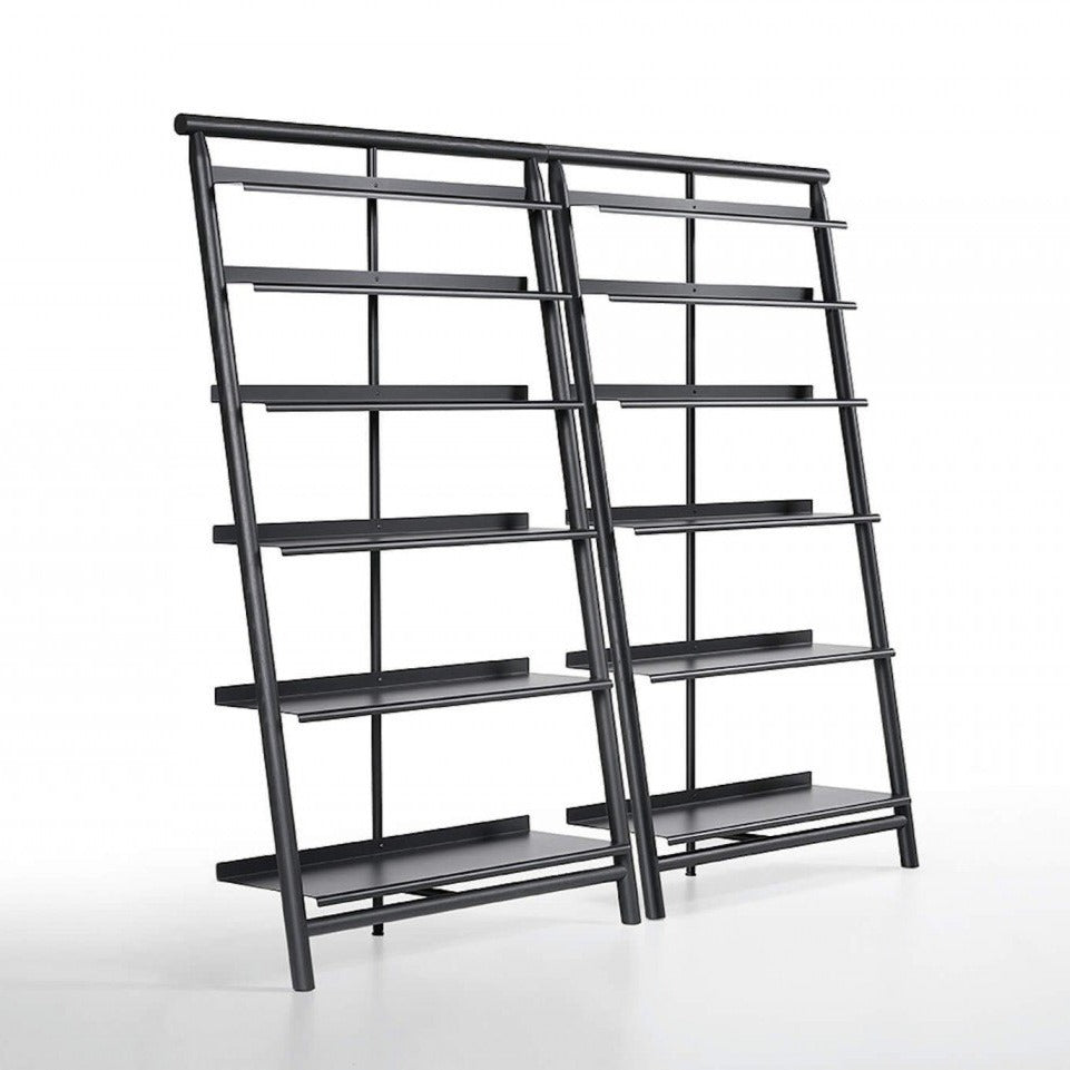 La bibliothèque Suite est conçue pour ressembler à des étagères échelle. Elle est conçue pour s'adosser judicieusement au mur. Montants en acier et bois. Étagères en acier laqué.