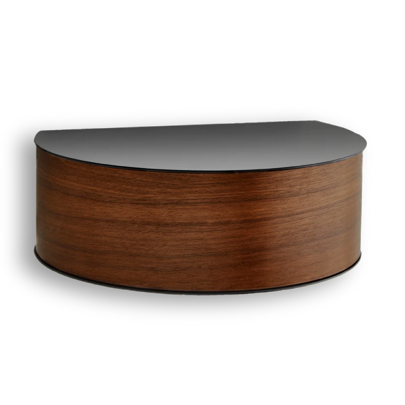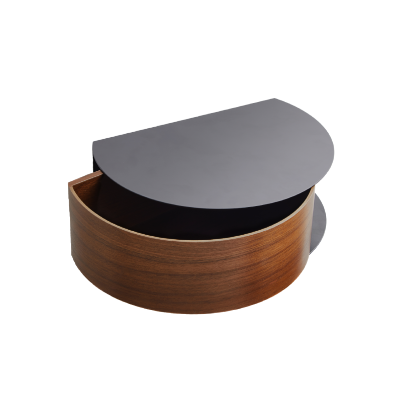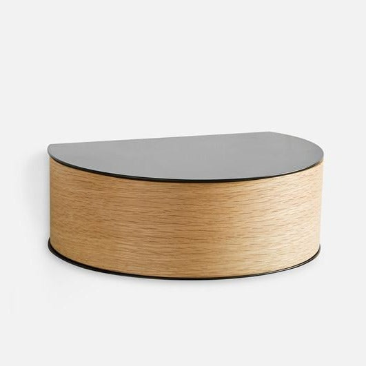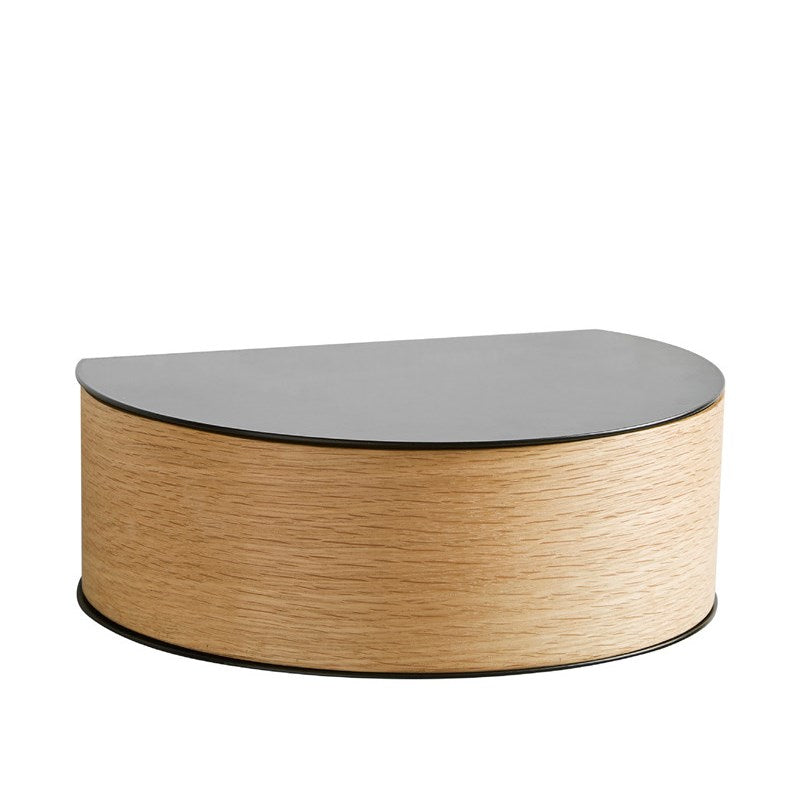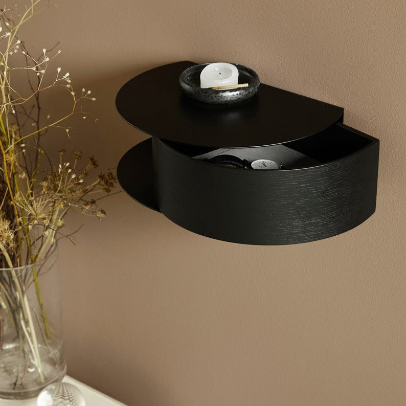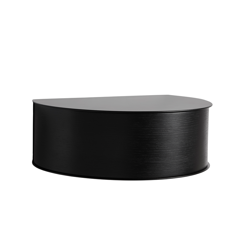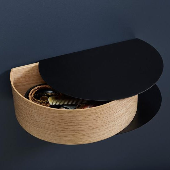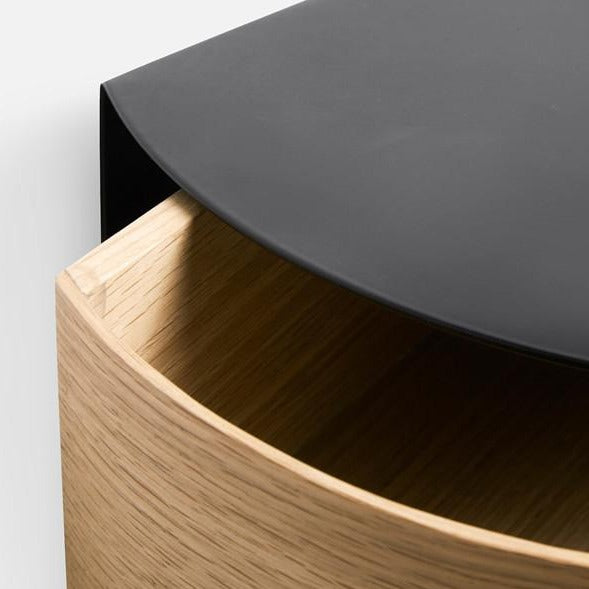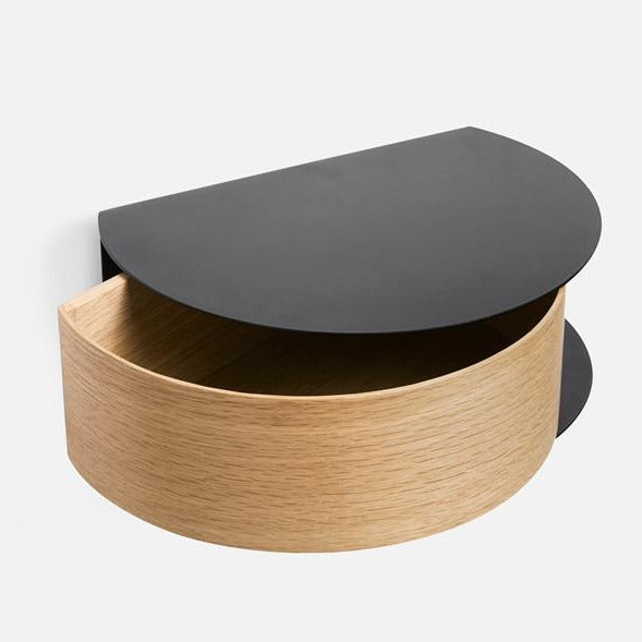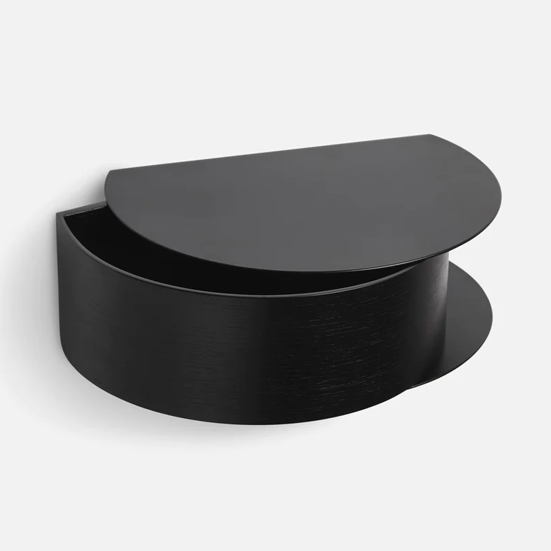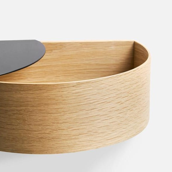 Wallie allie harmonieusement le chêne courbé au métal noir massif pour créer un élégant tiroir mural. Avec ses formes rondes et douces, Wallie offre un design visuellement puissant, idéal comme pièce maîtresse ou pour s'associer à d'autres meubles. Le support s'intègre parfaitement au tiroir en bois magnétique, créant ainsi un design à la fois minimaliste et fonctionnel.
