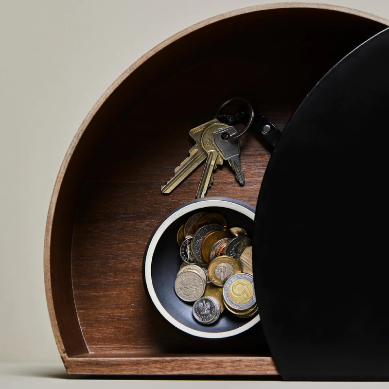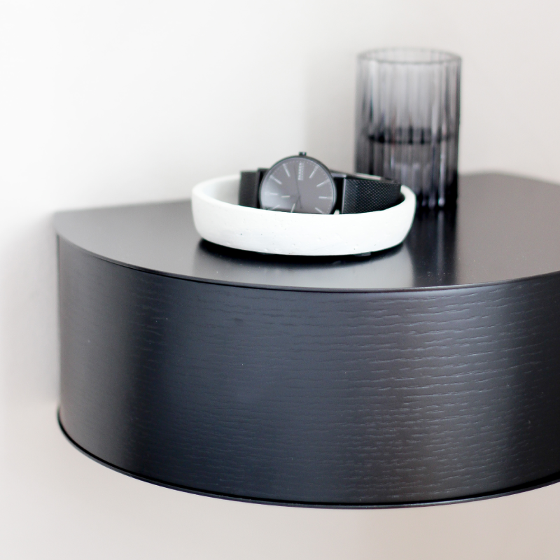 Wallie est parfait pour ranger les petits objets du quotidien dans le couloir ou comme table de chevet dans la chambre.