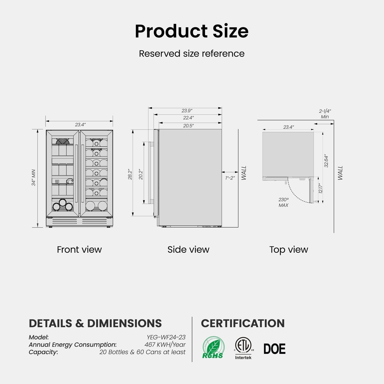 Grande capacité : Pouvant accueillir 20 bouteilles de Bordeaux standard de 750 ml et jusqu’à 60 canettes de 350 ml, le réfrigérateur à vin Yeego répond à tous vos besoins en matière de réception. Le côté droit est équipé de six clayettes amovibles en bois pour le vin, tandis que le côté gauche offre trois grilles métalliques réglables pour les boissons, offrant ainsi une solution de rangement flexible pour différentes tailles de bouteilles et de canettes.