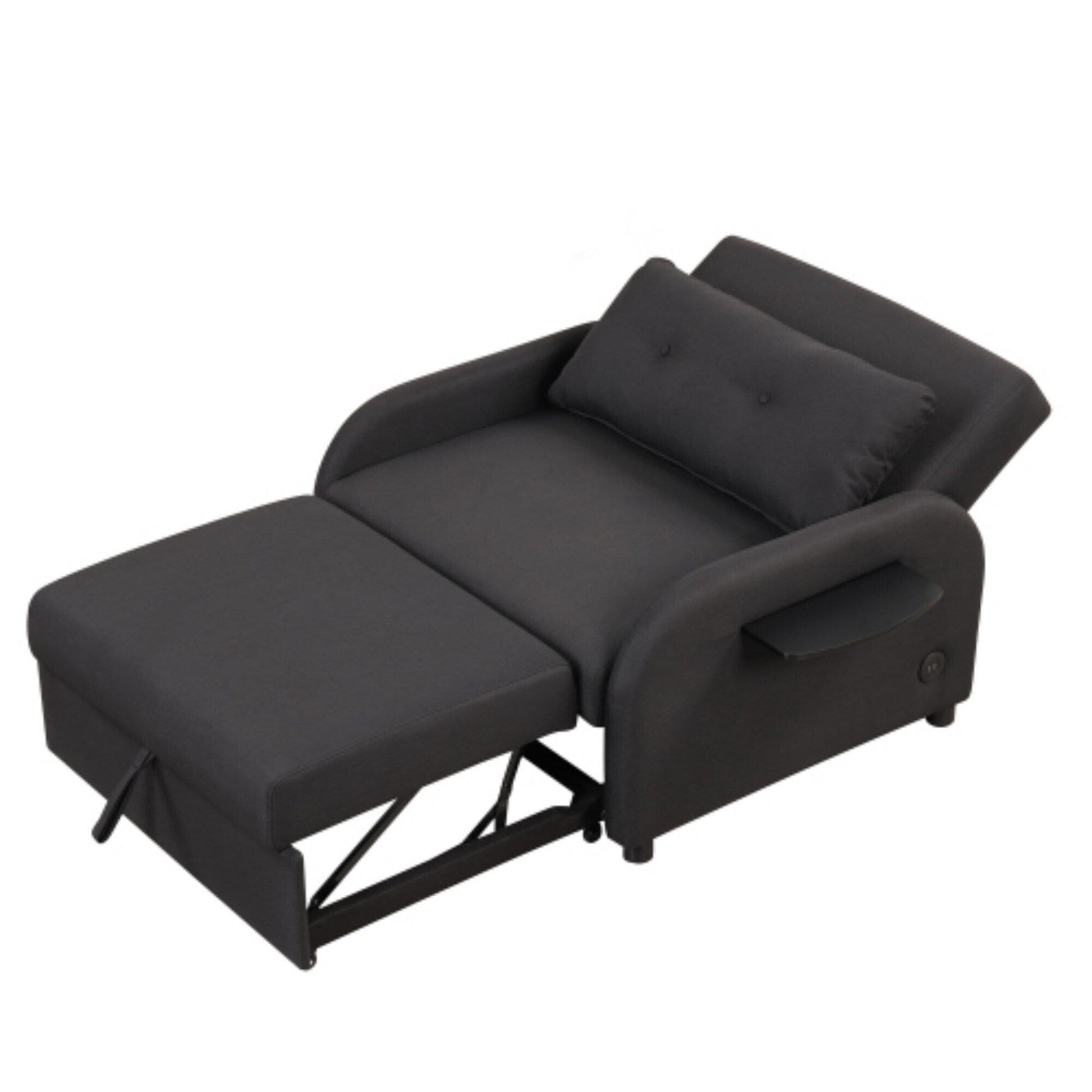Maximisez confort et fonctionnalité avec ce canapé-lit gigogne 3-en-1 polyvalent. Idéal pour les petits espaces, il se transforme facilement d'un canapé chic en un lit confortable pour vos invités, offrant une solution élégante et pratique pour votre intérieur. Doté d'une table à oreilles pliable et de deux ports USB de chaque côté, ce canapé-lit permet de recharger facilement vos appareils pendant que vous vous détendez. Son dossier réglable offre trois angles d'inclinaison différents, tandis que ses coussins amovibles, recouverts d'un doux lin, offrent un confort optimal. Avec son rembourrage en éponge élastique haute densité et sa structure en fer robuste, ce canapé-lit gigogne est conçu pour un confort durable. Disponible en trois coloris élégants : gris, noir et beige, ce canapé-lit gigogne s'intègre parfaitement à n'importe quelle pièce.