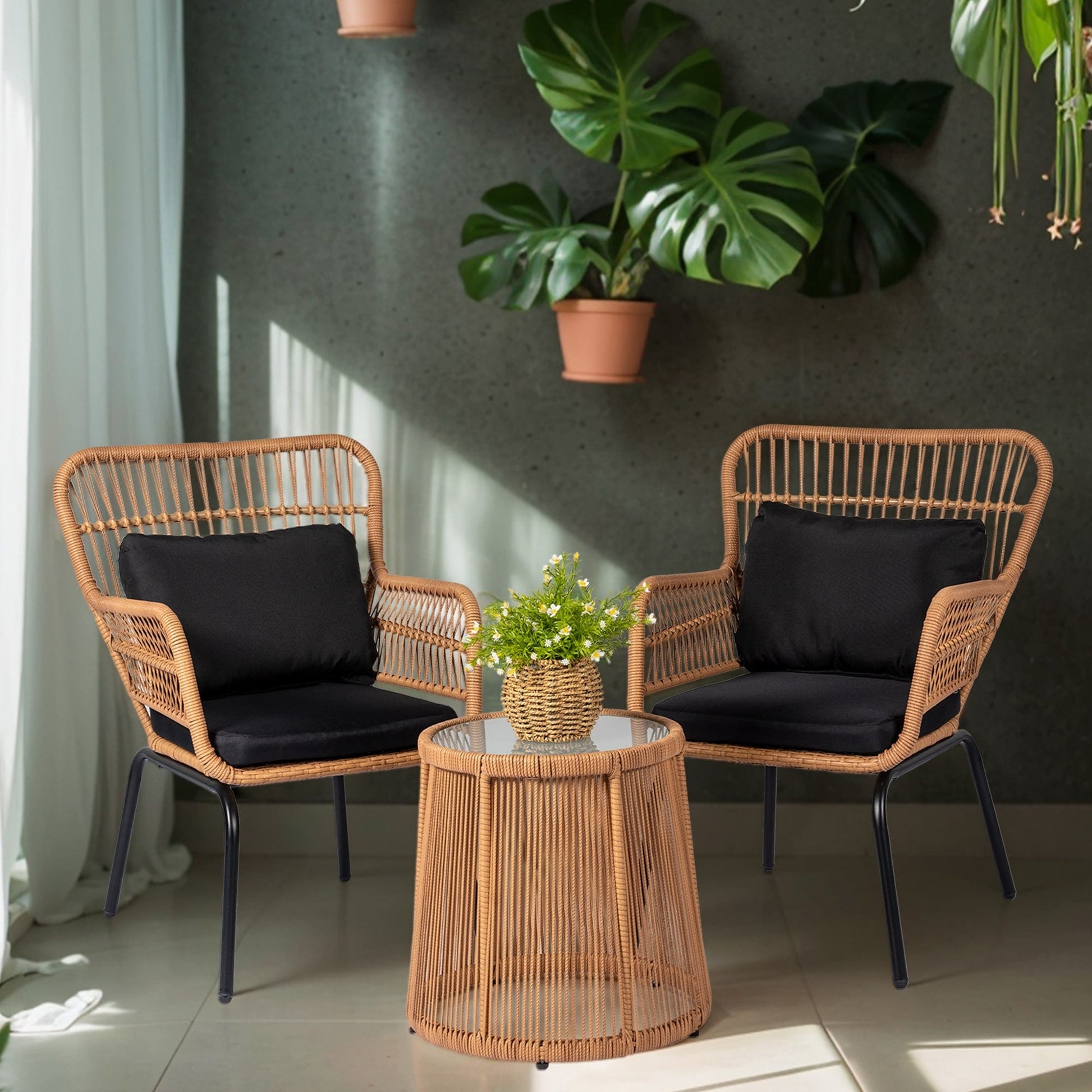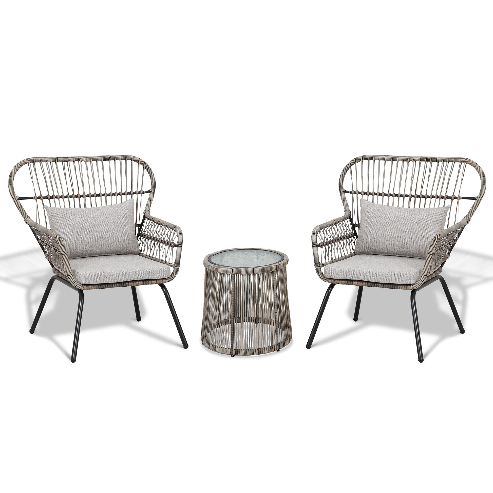 - Ensemble de bistrot de conversation en osier d'extérieur 3 pièces, ensemble de chaises de patio en rotin toutes saisons avec table pour balcon, porche de jardin et arrière-cour,