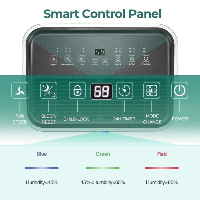 【DÉSHUMIDIFICATEURS MULTIPLES DE 3500 pi²】- Nos déshumidificateurs sont équipés de 3 modes au choix : AUTO, CONT et VEILLE. Ils offrent une capacité de déshumidification très puissante. À 18 °C et 60 % d'humidité, ils peuvent éliminer 6,2 litres d'humidité par jour. À 30 °C et 80 % d'humidité, ils peuvent éliminer jusqu'à 20 litres d'humidité par jour. C'est le déshumidificateur idéal pour les sous-sols, bureaux, maisons, salles de bains, chambres, cuisines, réserves, salons, buanderies, caves, etc.