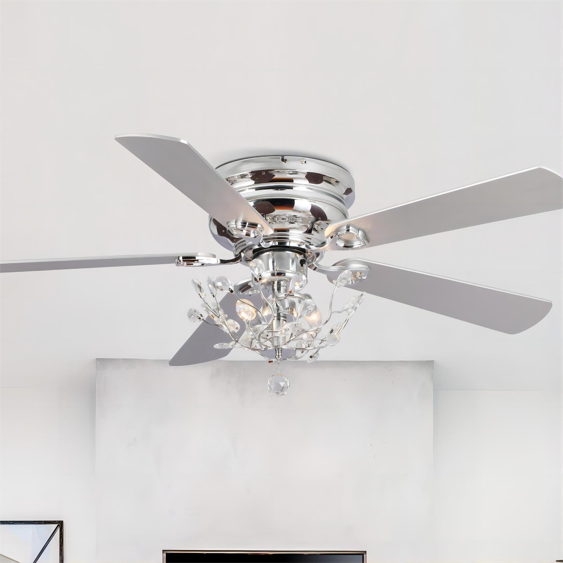 Ventilateur de plafond encastré moderne réversible à 5 pales en cristal avec télécommande