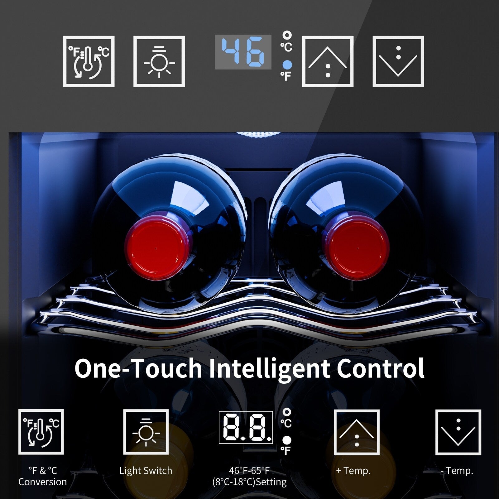 Contrôle intelligent par simple pression : L'écran tactile intuitif facilite l'utilisation. Vous pouvez régler la température entre 8 et 18 °C, allumer et éteindre l'éclairage LED et même convertir les températures Fahrenheit en Celsius en quelques clics.