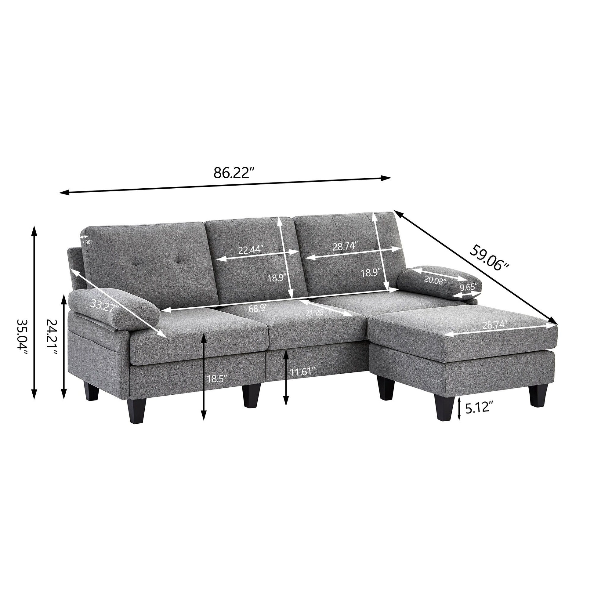 Canapé sectionnel en L 86,22 pouces avec poches...