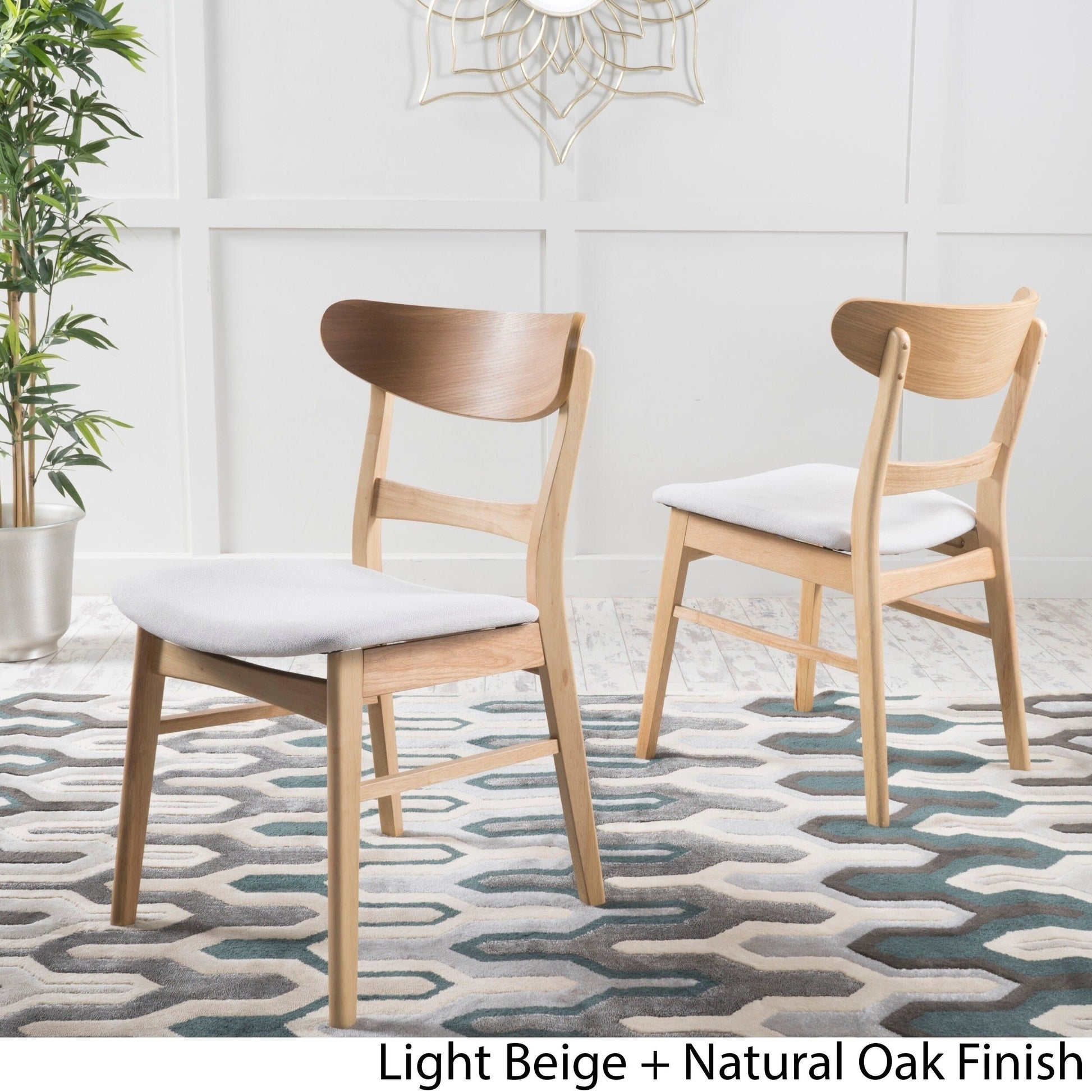 Chaise de salle à manger Abrielle en bois d'hévéa rembourrée de style milieu de siècle (lot de 2) par Christopher Knight Home
