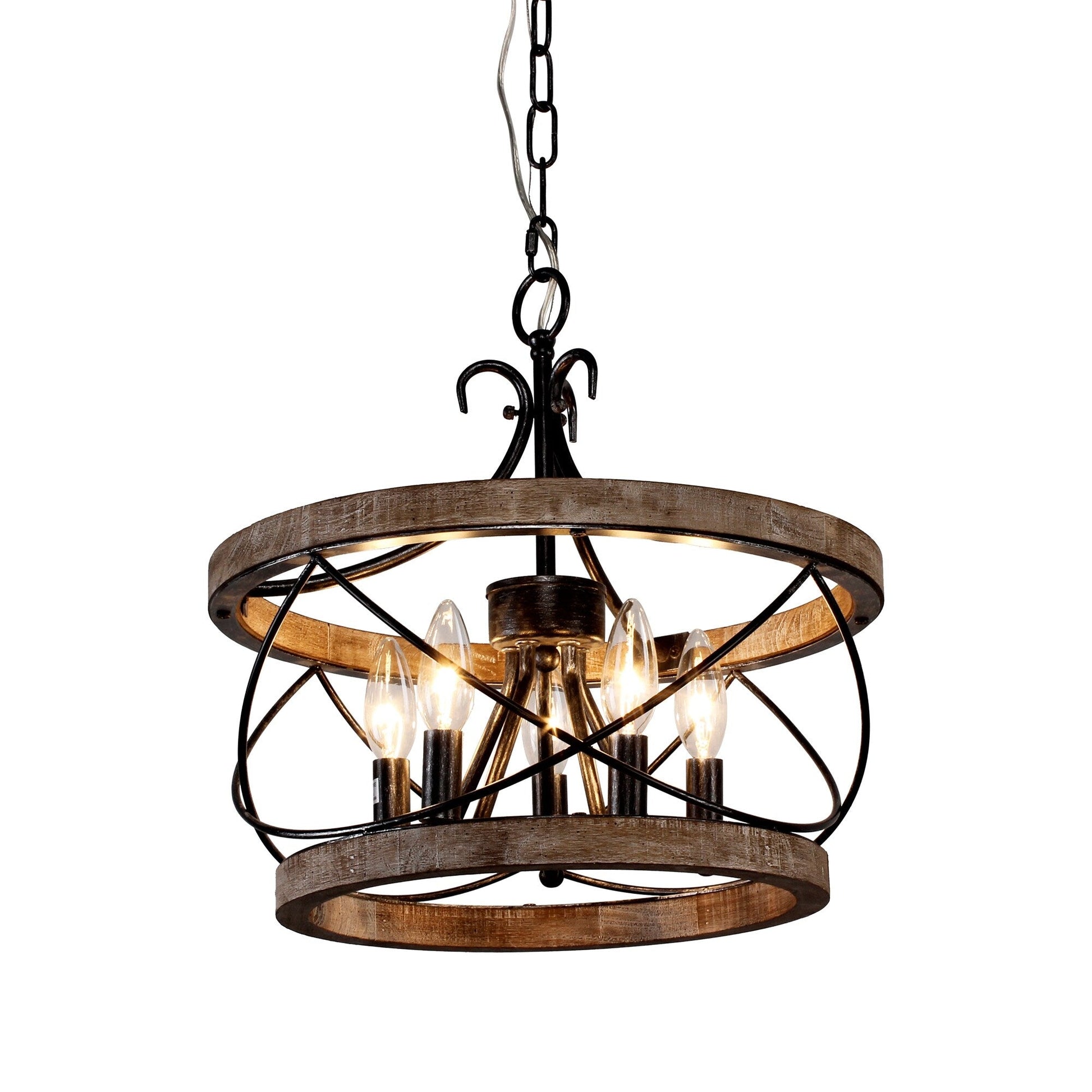 Lustre cage rustique en bois Bella Depot à 5 lumières, éclairage à intensité variable, suspension réglable de 15,7 pouces pour îlot de cuisine