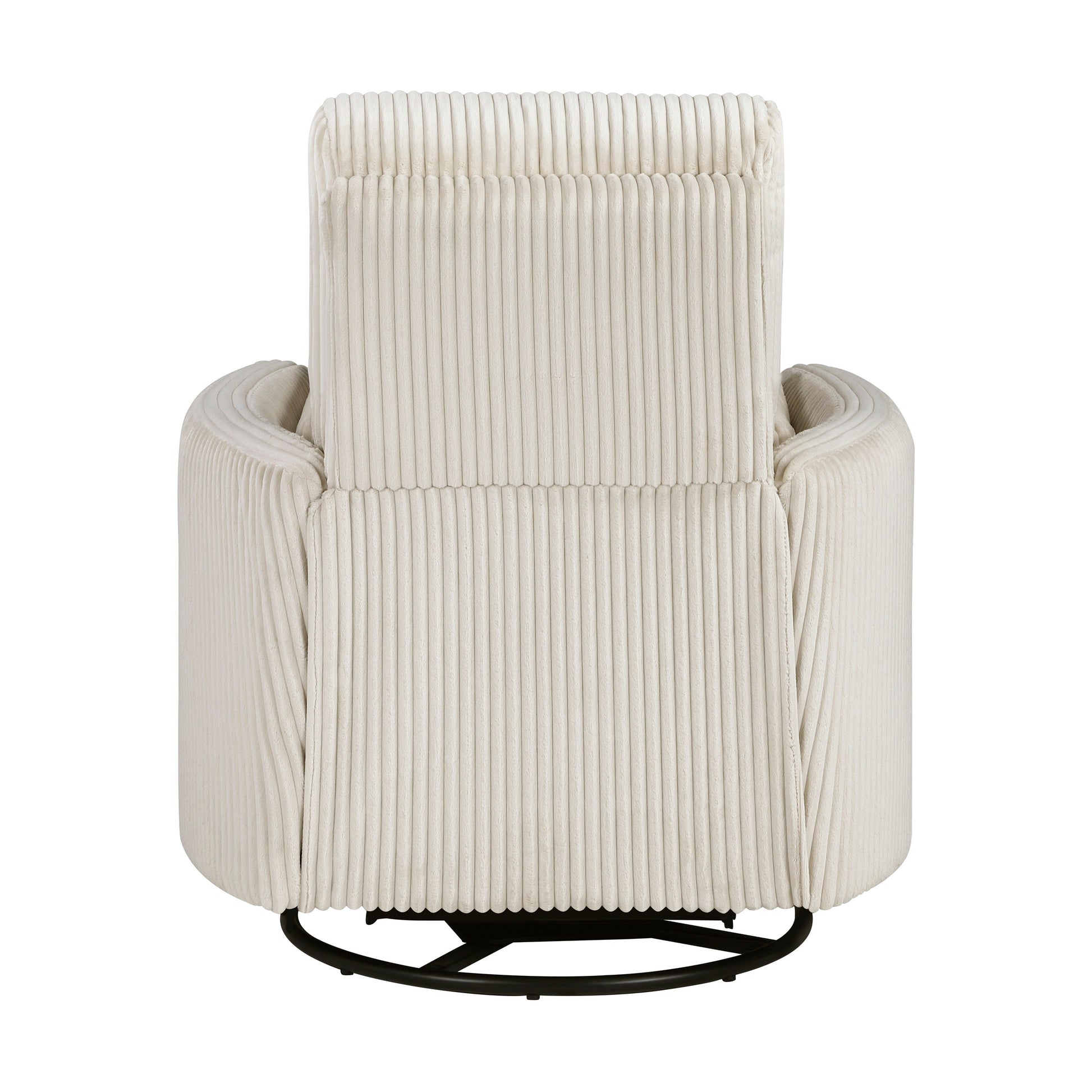 Détendez-vous avec style grâce à ce fauteuil inclinable pivotant, élégamment revêtu d'un luxueux velours côtelé. Conçu pour un confort durable, il est doté de coussins de dossier et d'assise intégrés et d'un mécanisme d'inclinaison pratique à poignée pour une détente en toute simplicité. Profitez de la polyvalence d'une rotation à 360 degrés et d'un mouvement de glissement doux. Deux coussins assortis sont inclus, ajoutant confort et élégance à votre espace. Cette collection est disponible en beige, gris et taupe.