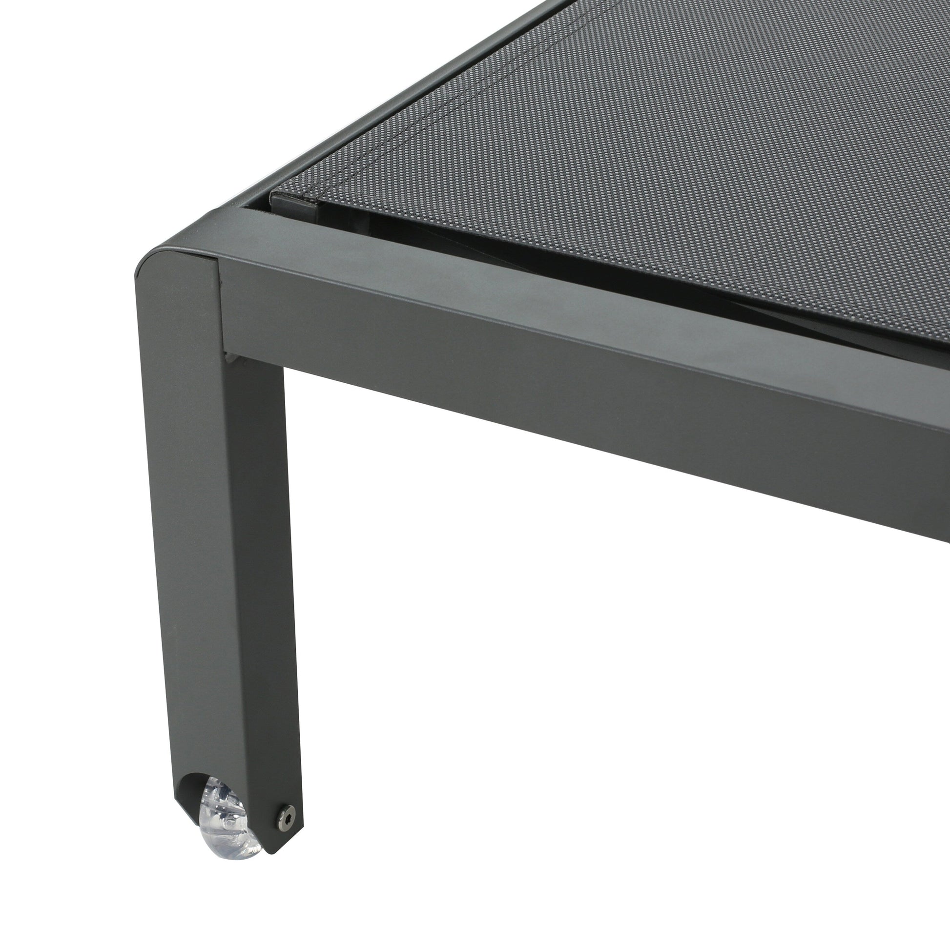 Assise en maille : L'assise est fabriquée en maille extérieure, ce qui confère à notre chaise longue souplesse et maintien. Ce matériau léger permet à l'air de circuler et d'évacuer la chaleur corporelle lors des journées chaudes.