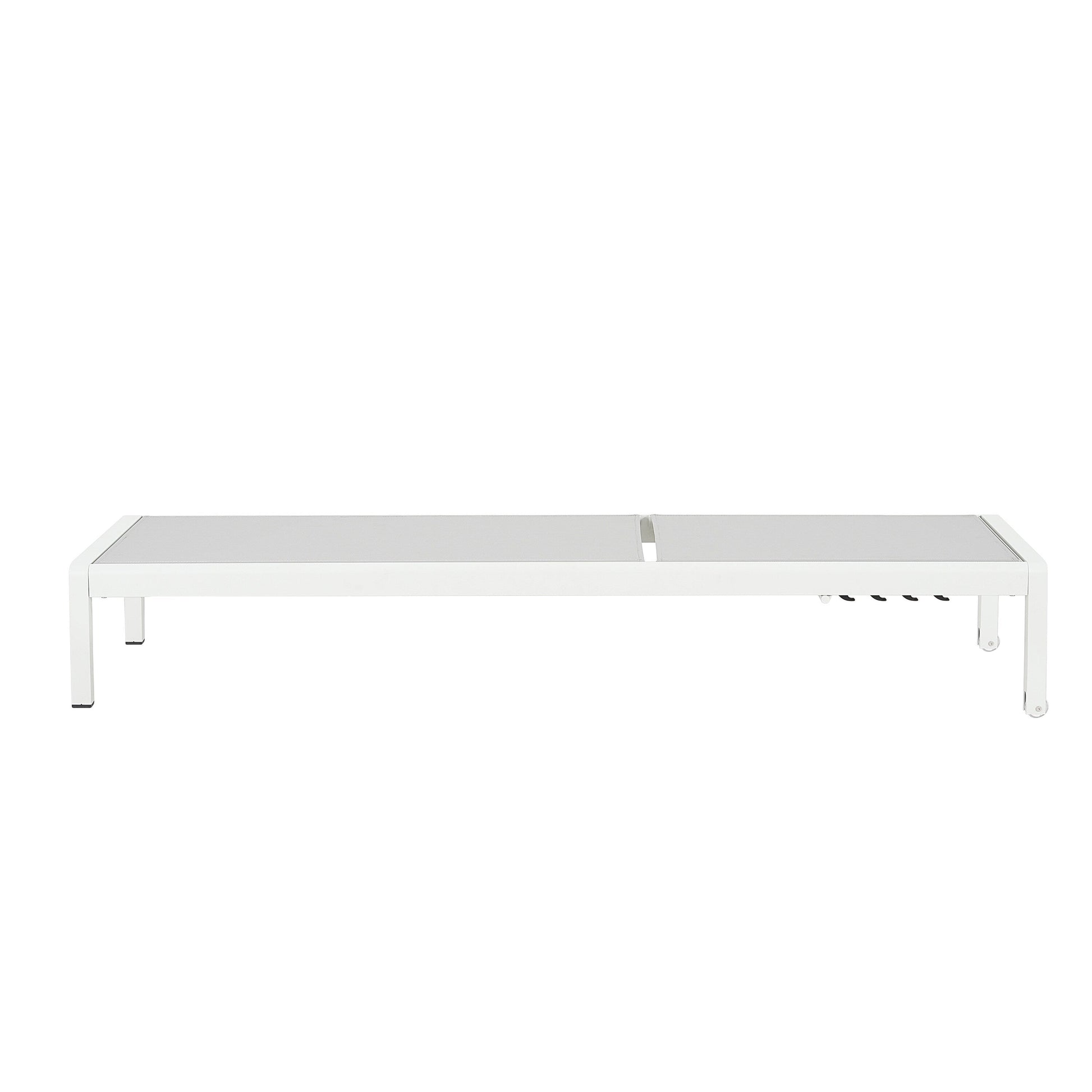 Structure en aluminium : Cet ensemble de chaises longues est fabriqué en aluminium, ce qui lui confère une structure légère et stable. Ce matériau est résistant à la rouille, ce qui prolongera sa durée de vie.