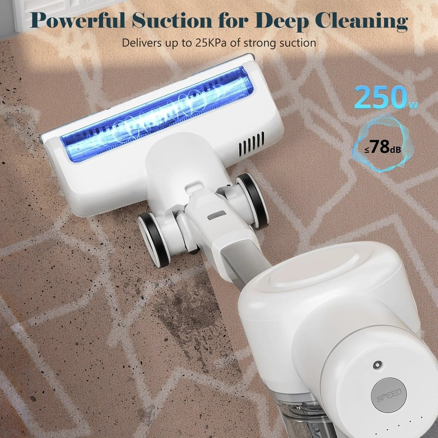 [Aspiration puissante] : Trois modes d'aspiration permettent une personnalisation pour le nettoyage quotidien (mode éco) ou les tâches plus difficiles (aspiration élevée), facilement commutables avec un seul bouton. L'aspirateur balai filaire mis à jour est doté d'un moteur sans balai, offrant jusqu'à 25 kPa d'aspiration pour un nettoyage efficace sur tous les types de sols et tapis courts.