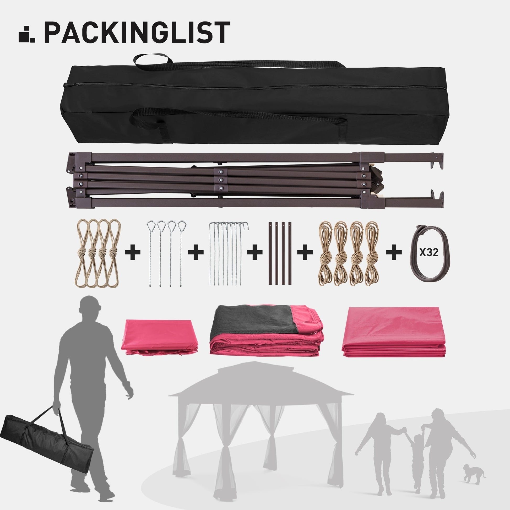 • STRUCTURE ROBUSTE - Cette tonnelle pliante est étonnamment robuste et légère. La structure est en acier haute qualité et thermolaquée pour une meilleure résistance à la rouille. Elle est composée de plusieurs barres de renfort qui se tordent fermement et résistent aux déformations. (Piquets et cordes d'ancrage inclus.)