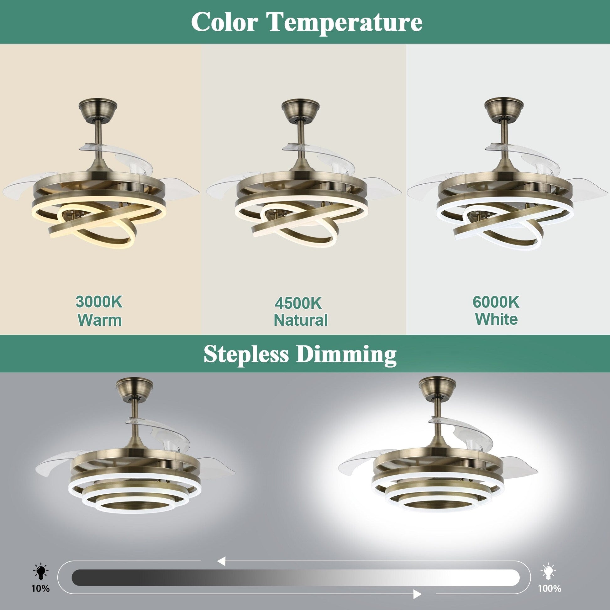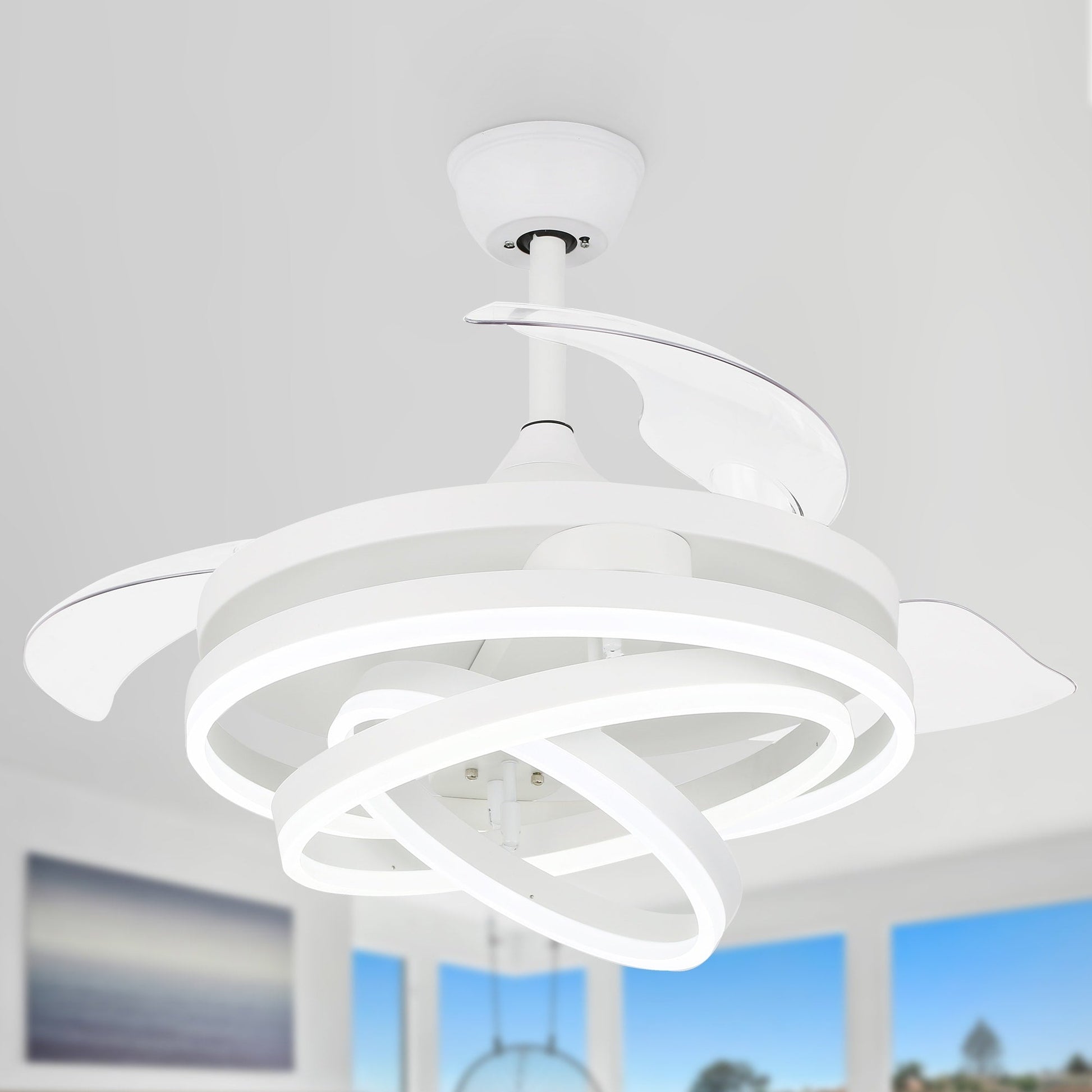 Ventilateur de plafond rétractable Cusp Barn 42 avec lumières et télécommande DIY Forme Fandelier Moderne Silencieux Moteur CC Plafonnier LED