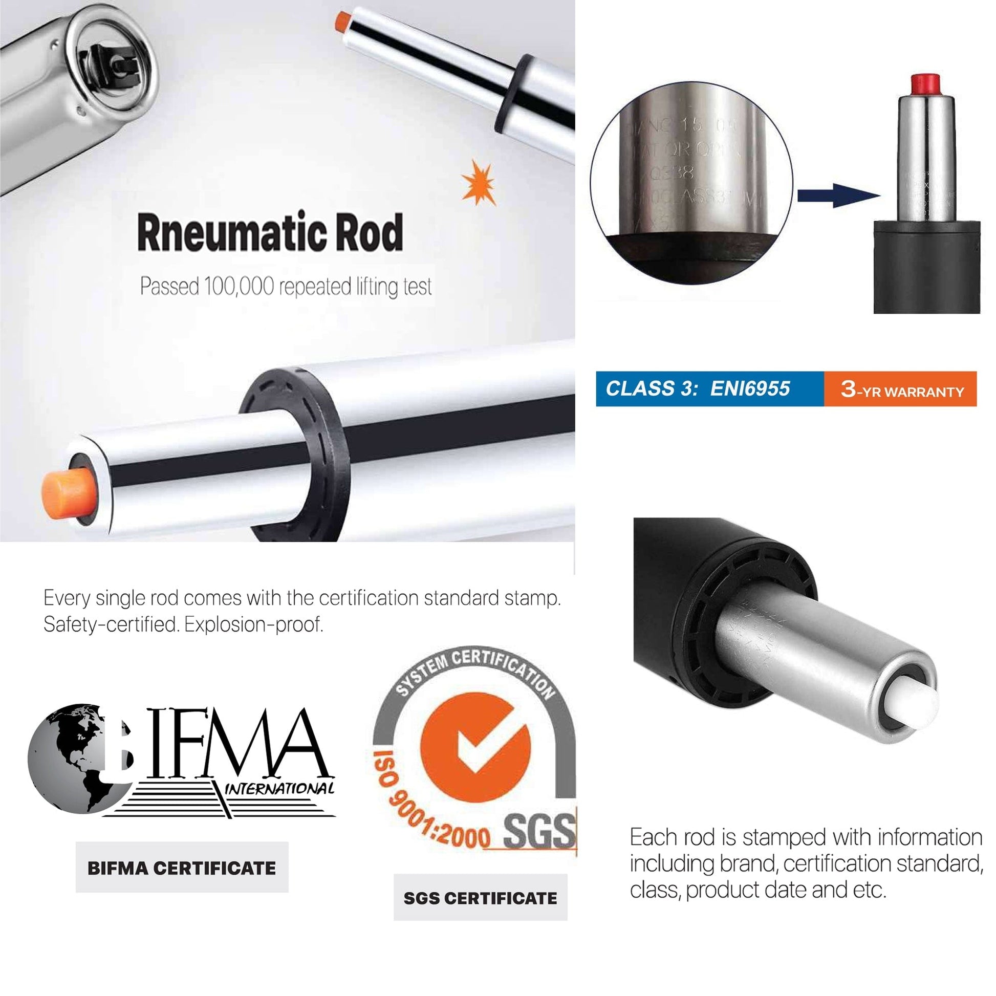 • Le levier de réglage de la hauteur à pression de gaz est conforme à la norme BIFMA de niveau 3
