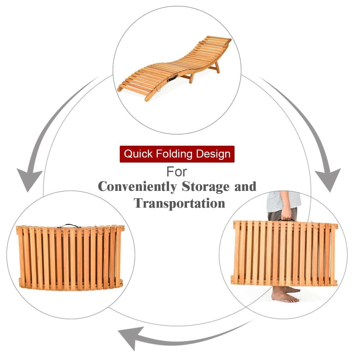 Chaise longue pliante d'extérieur Gymax 2 pièces en eucalyptus avec - Voir les détails