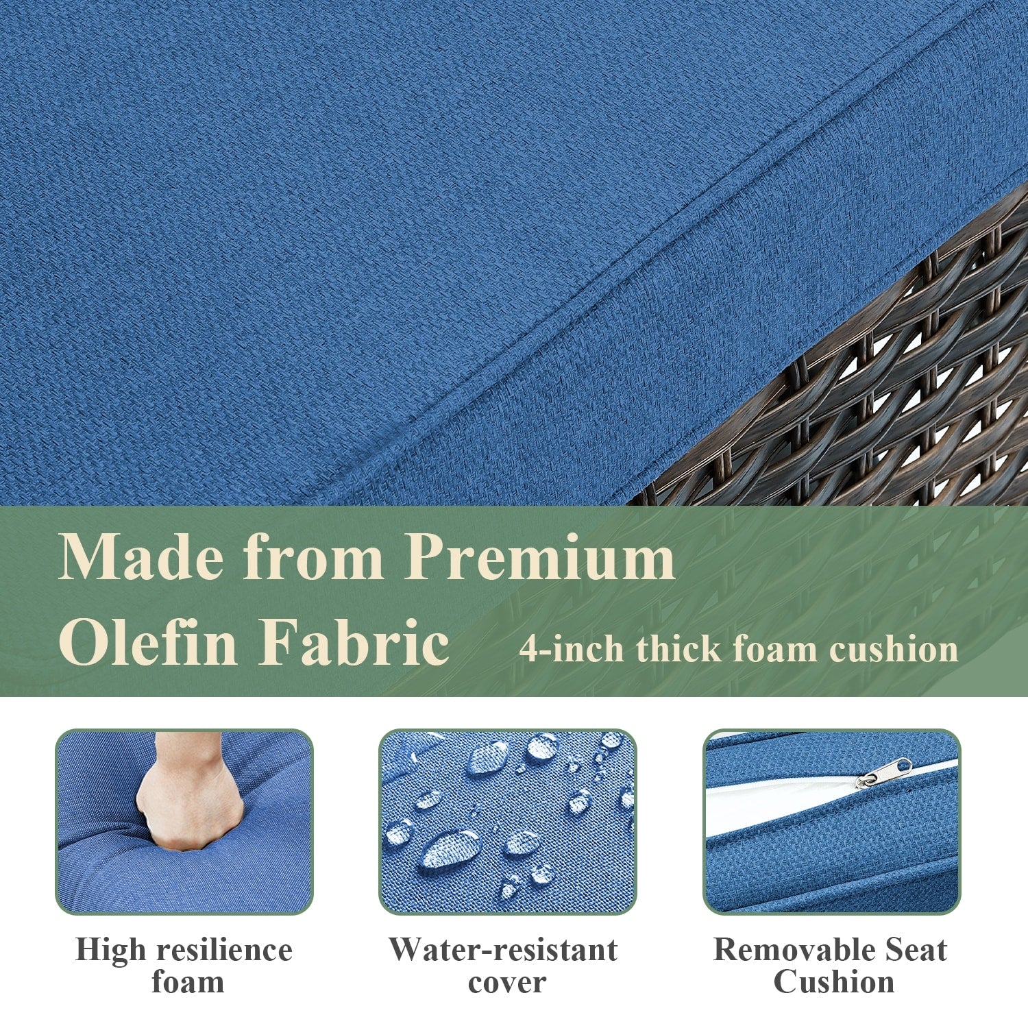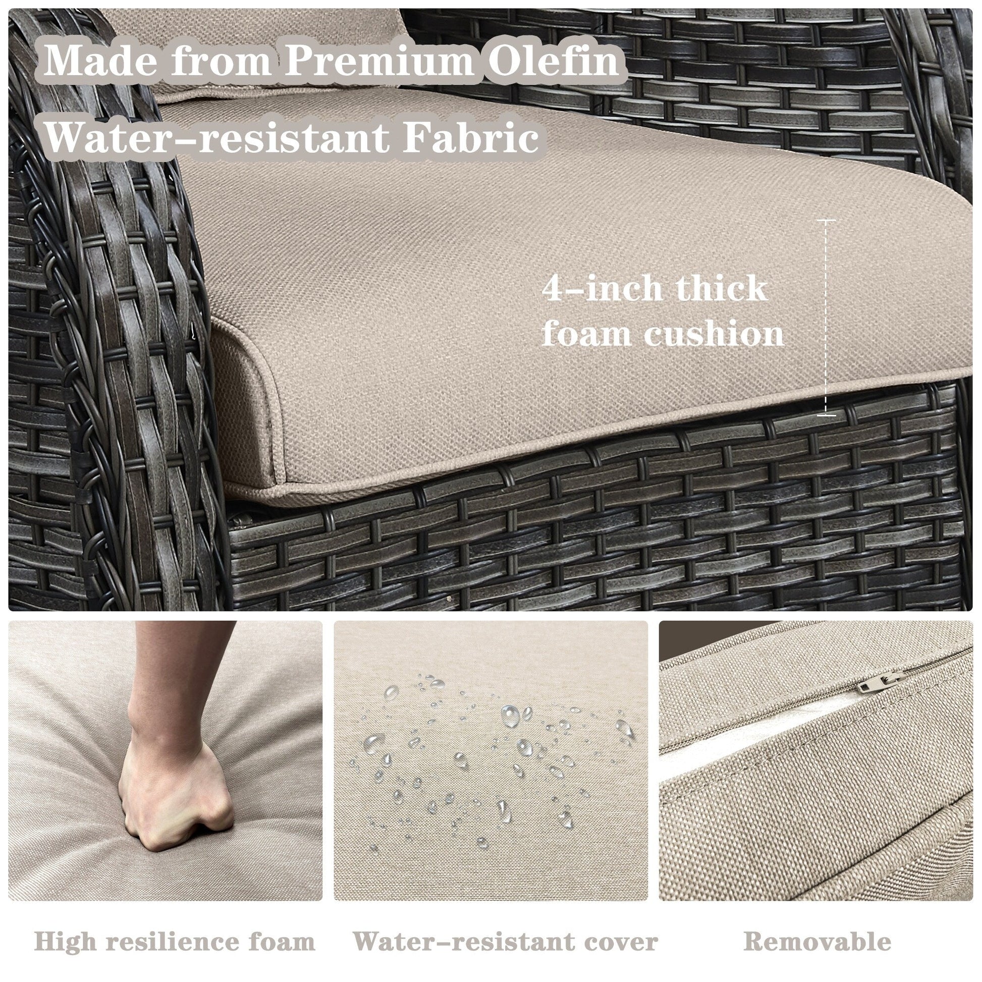 • Assise moelleuse et profonde : ces chaises longues d'extérieur sont dotées de sièges profonds et larges avec des coussins rembourrés en éponge de 4 pouces d'épaisseur pour créer l'expérience ultime d'assise sur le patio.