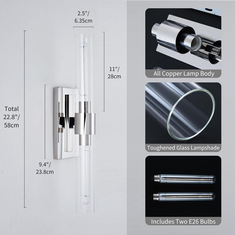 Appliques murales modernes : Inspirée des appliques murales de grange, cette applique murale moderne en tube de verre est dotée d'un abat-jour cylindrique en verre transparent et d'un revêtement en nickel pour une élégance moderne et élégante. Son style simple et élégant apporte une touche industrielle au luxe contemporain.
