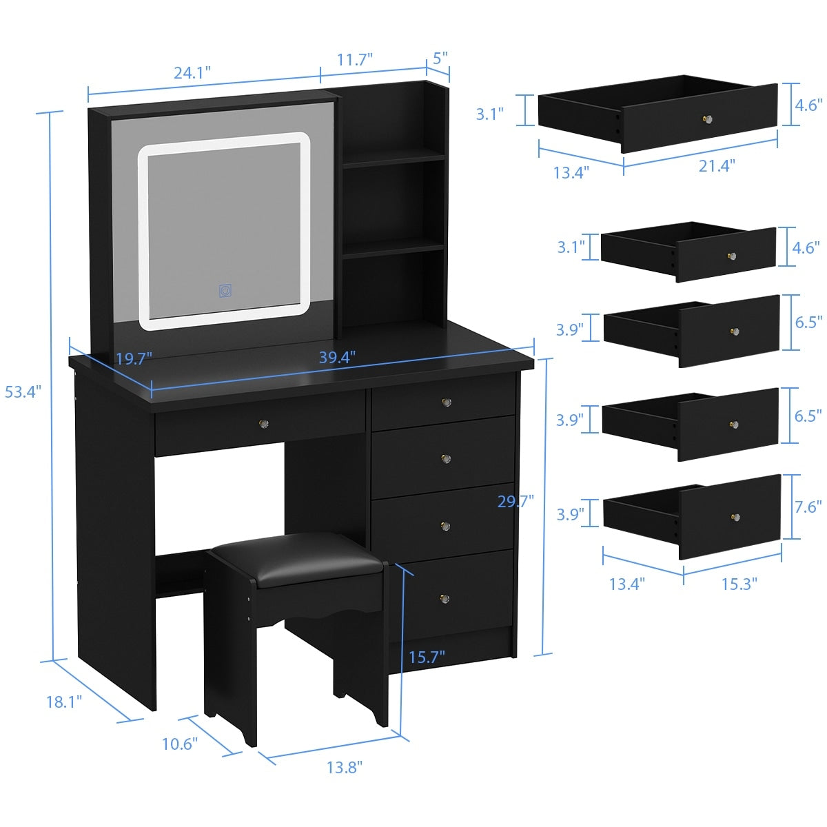 Coiffeuse Kerrogee avec miroir éclairé réglable et tabouret...
