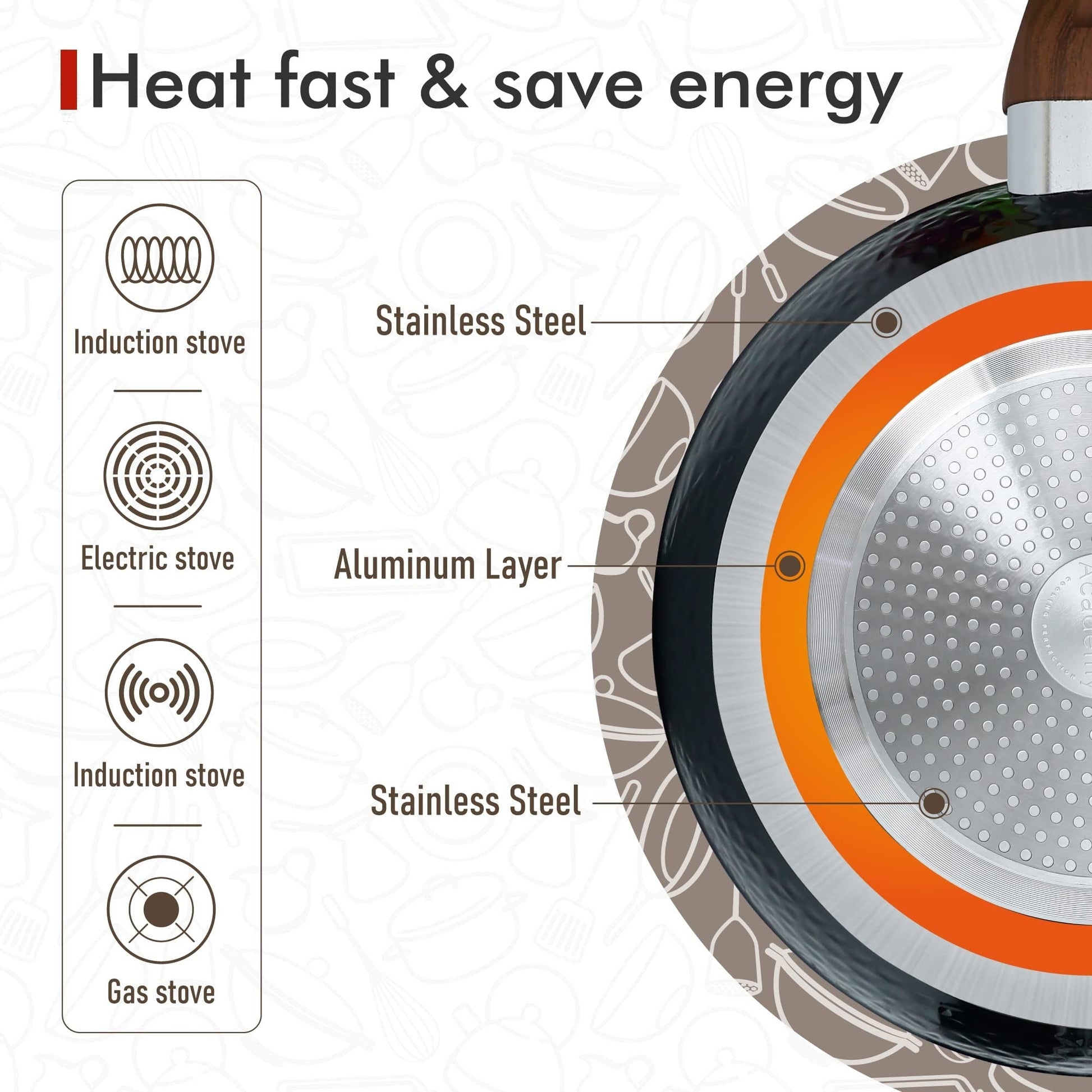 • Fond en aluminium forgé à haute conductivité thermique pour un chauffage uniforme de la surface