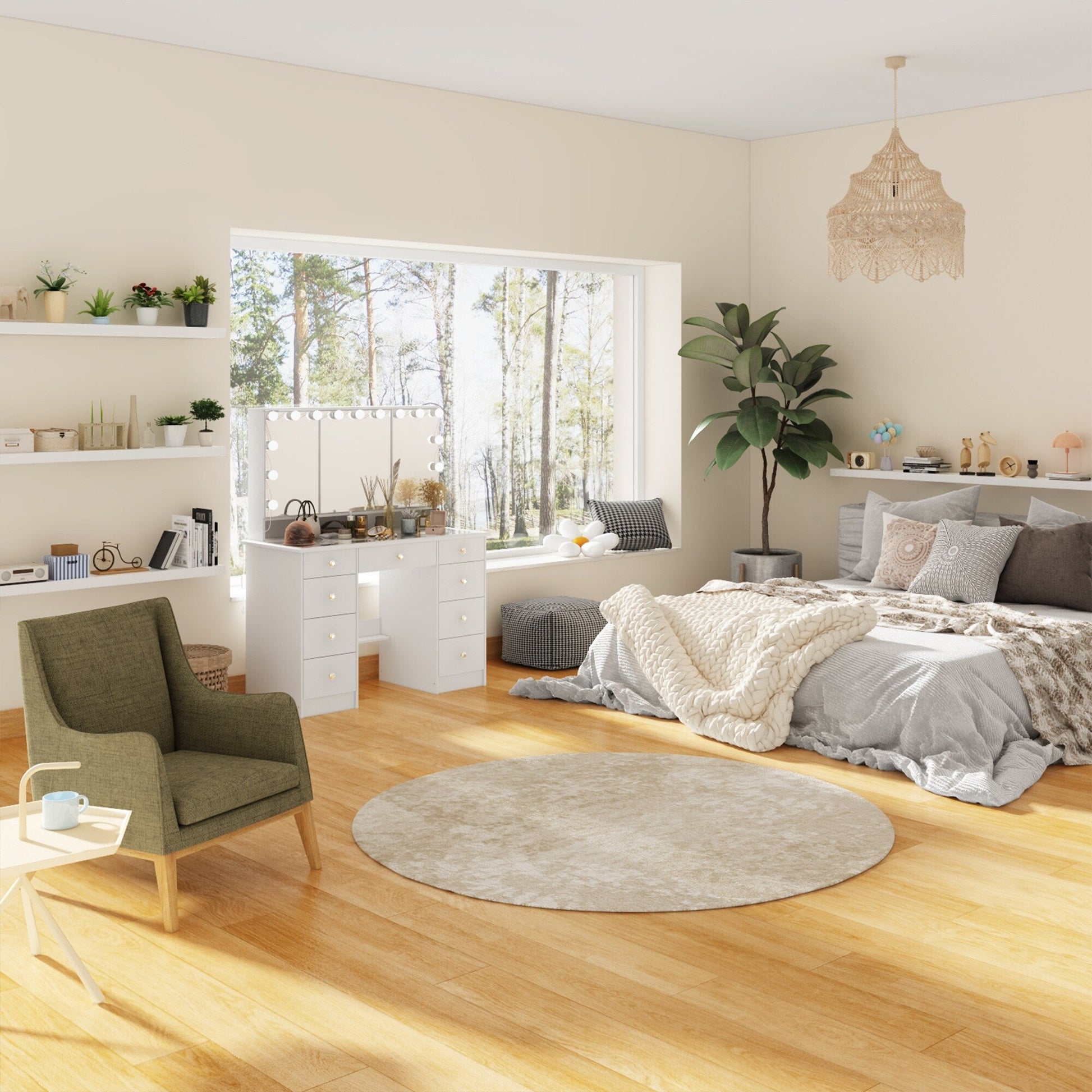 Coiffeuse avec miroir à trois volets et éclairage...
