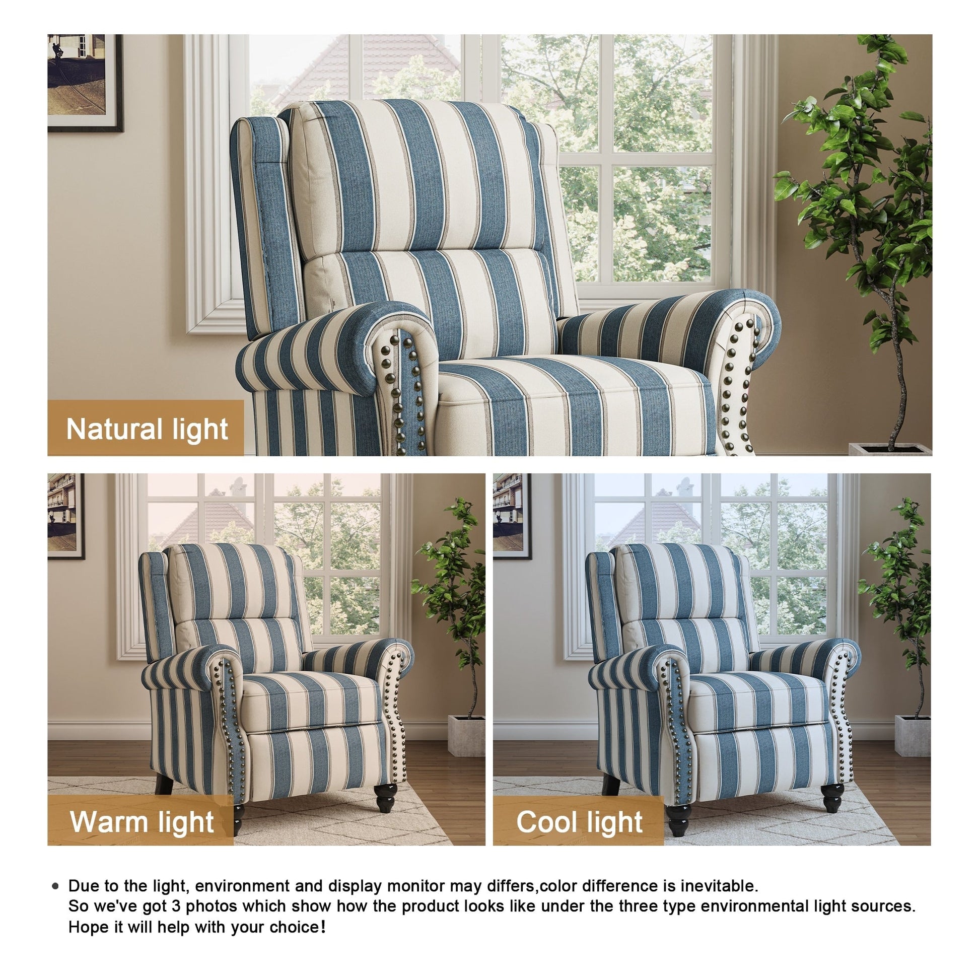 Sublimez votre espace détente avec ce fauteuil inclinable élégant et polyvalent, conçu pour allier style et confort. Son mécanisme d'inclinaison fluide, parfaitement contrôlé par le corps et les pieds, vous permet de trouver facilement la position idéale pour une détente totale. Rembourré de mousse haute densité au niveau de l'appuie-tête, des lombaires, du dossier et des accoudoirs, il offre un soutien complet du corps et soulage la pression pendant que vous vous détendez. Que vous regardiez la télévision, lisiez ou fassiez une sieste, ce fauteuil inclinable offre l'équilibre idéal entre confort et style. Deux options haut de gamme sont disponibles : un similicuir lisse pour une finition moderne et facile d'entretien, ou un tissu en lin confortable aux motifs floraux ou rayés, apportant une touche décorative et chaleureuse, idéal pour une esthétique plus dynamique ou traditionnelle. Avec ses finitions cloutées et son large choix de couleurs et de motifs, il s'intègre parfaitement à tout salon, bureau ou étude, faisant de lui à la fois une solution d'assise fonctionnelle et une pièce maîtresse élégante pour votre intérieur.