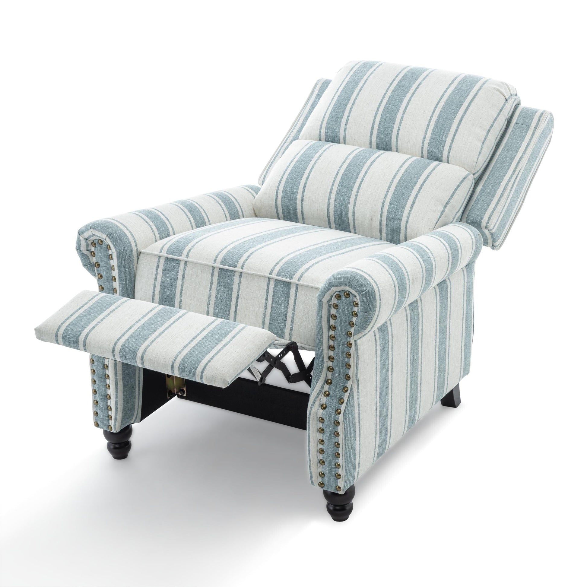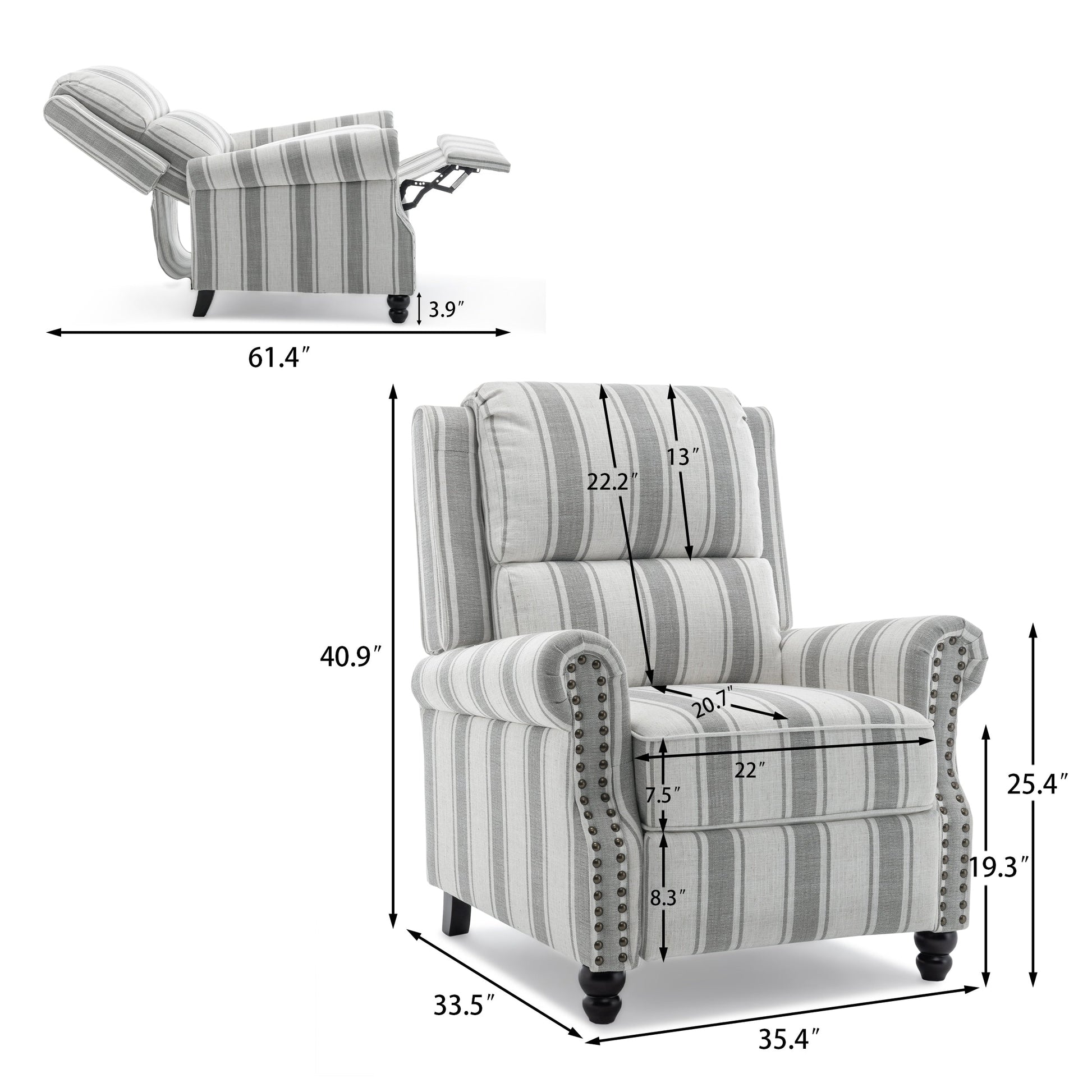 - Le dossier est inclinable de 100 à 150 degrés, vous permettant d'adopter différentes postures : assis pour lire, penché pour regarder la télévision, allongé pour vous reposer. Le repose-pieds vous offre une détente optimale. Il suffit de le pousser vers l'arrière pour l'incliner, sans levier ni bouton.