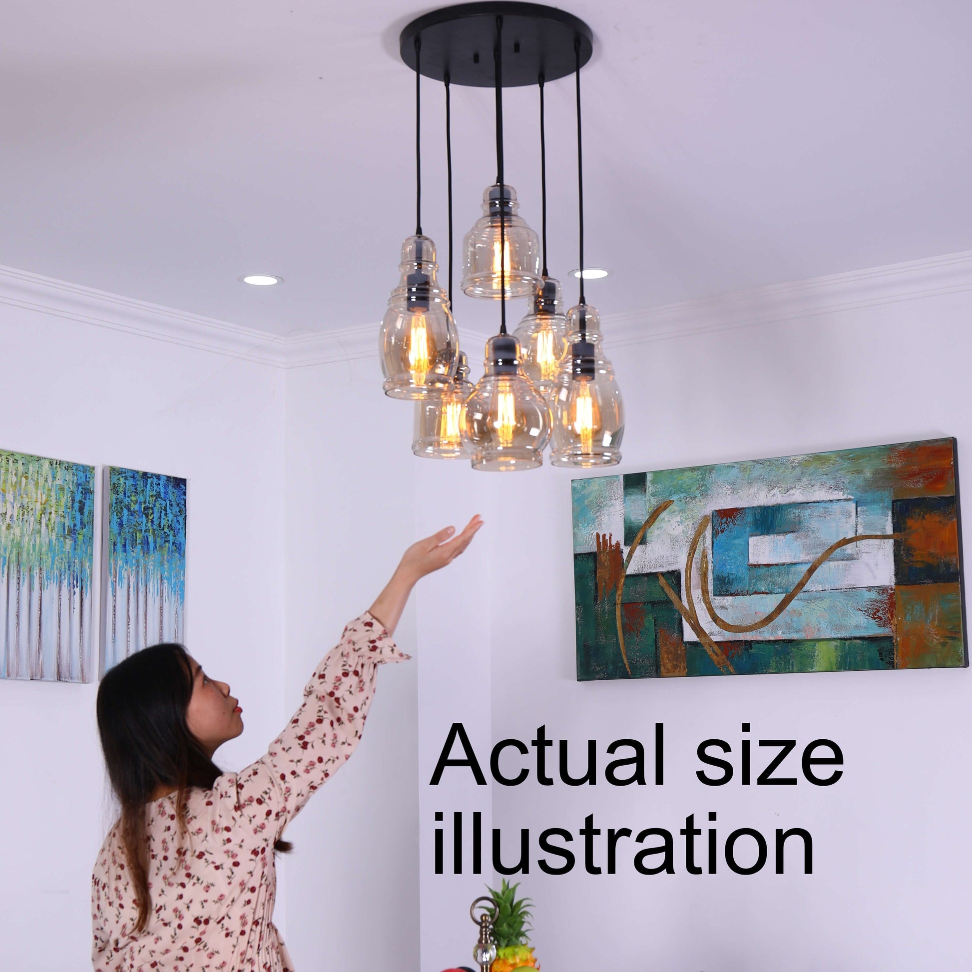 Sublimez votre décoration intérieure avec la suspension élégante et artistique Mariana. Son style transitionnel, sa finition noir antique et ses abat-jour en verre cognac créent un style unique et contemporain qui sublimera n'importe quel espace. Ce luminaire à six lumières est parfait pour une installation au-dessus d'une table à manger ou dans une entrée tamisée pour une touche de sophistication.