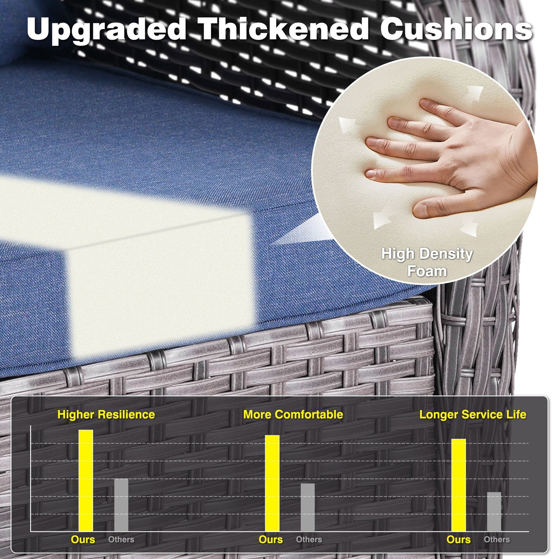 Créez une oasis de détente en plein air avec l'ensemble de salon de jardin OVIOS 5 pièces en osier. Cet ensemble comprend deux fauteuils, un canapé et deux poufs, tous fabriqués en résine tressée de qualité professionnelle, résistant aux intempéries et offrant une durabilité accrue. Les épais coussins d'assise en éponge offrent confort et détente, tandis que les dossiers hauts et les accoudoirs incurvés offrent un soutien ergonomique. Grâce à ses housses imperméables et faciles à nettoyer, cet ensemble est parfait pour votre terrasse, votre véranda, votre bord de piscine ou votre jardin. Choisissez parmi plusieurs coloris pour sublimer votre espace extérieur et l'adapter à votre style.