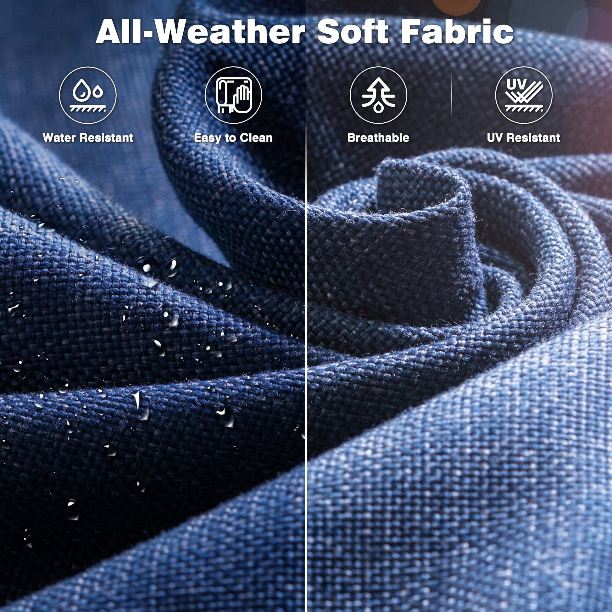 • Coussins épais en polyester éponge avec housses lavables et déperlantes