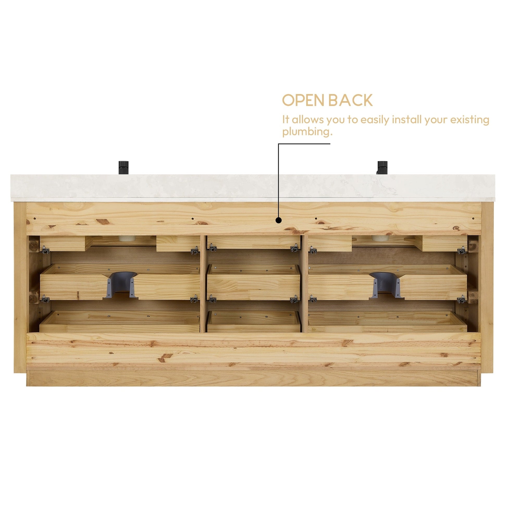 72 pouces - Six tiroirs à queue d'aronde robustes à fermeture douce sont dotés de cloisons intégrées pour un accès facile à tous vos articles de toilette.