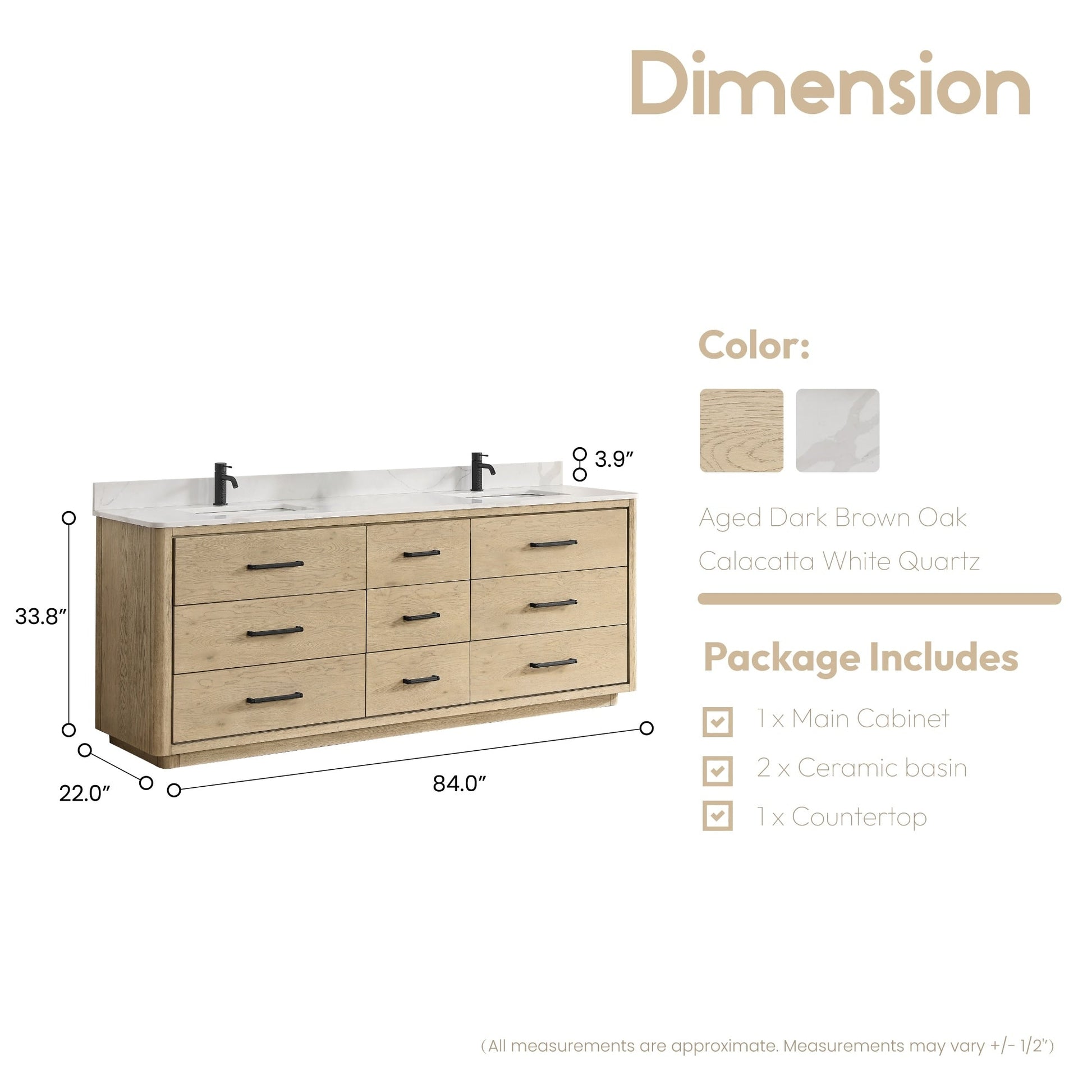 Transformez votre salle de bains en un havre de style et de sophistication grâce à notre meuble-lavabo autoportant de la série Porto, un meuble alliant savoir-faire artisanal et praticité au quotidien. Ce meuble raffiné allie la chaleur et l'élégance texturées du chêne massif au quartz blanc immaculé, créant un style à la fois accueillant et captivant. Ses profonds tiroirs à queue d'aronde avec compartiments vous permettent de ranger vos essentiels de manière discrète et organisée.