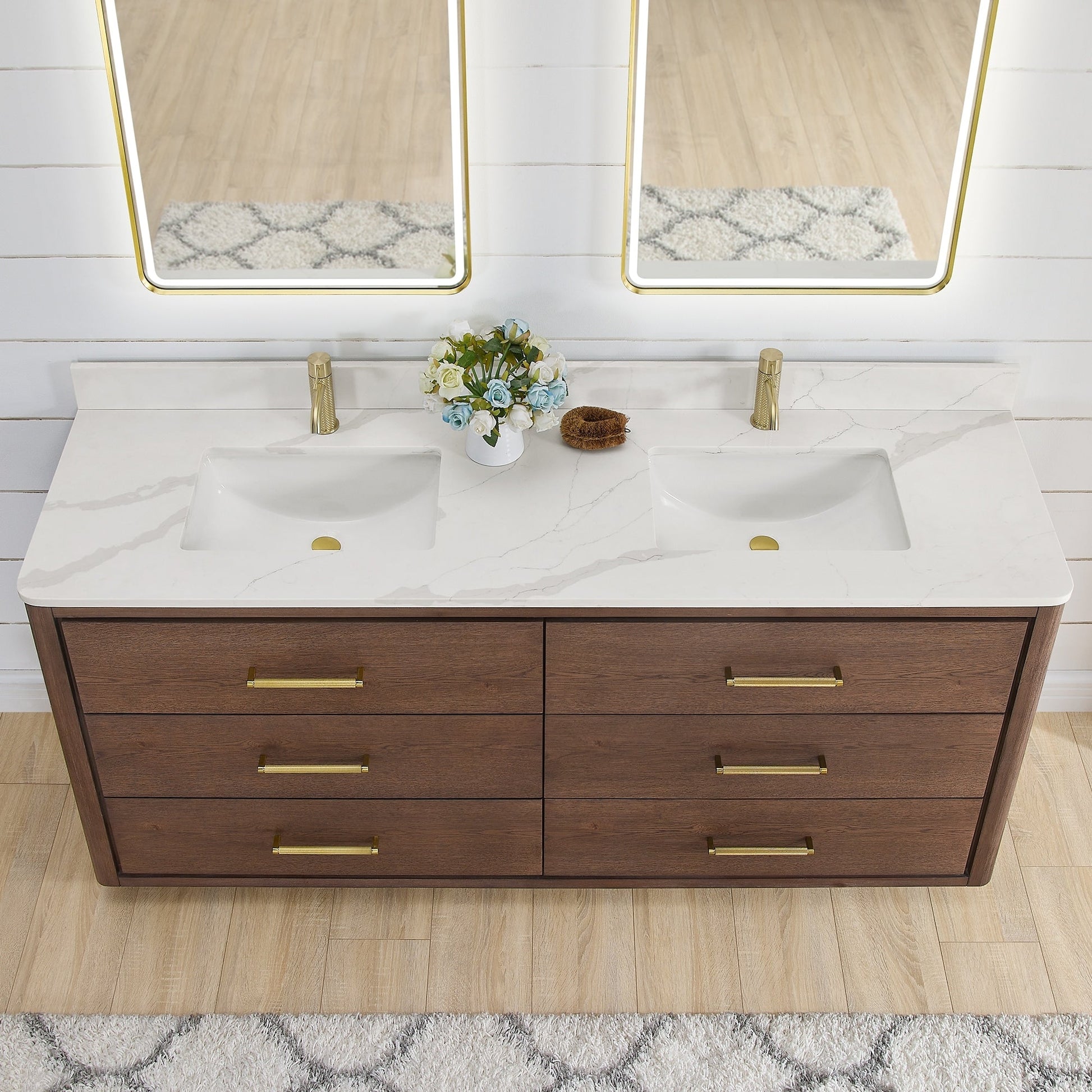 Meuble-lavabo Porto avec dessus en quartz blanc sans...
