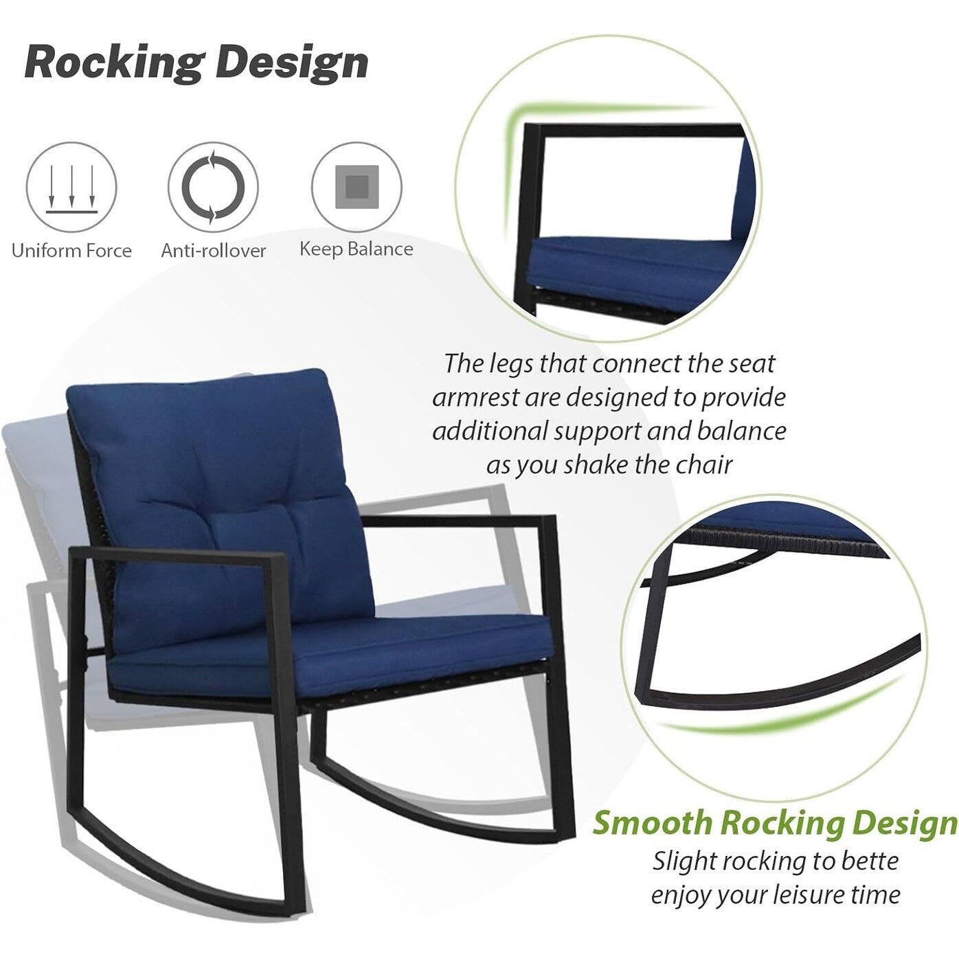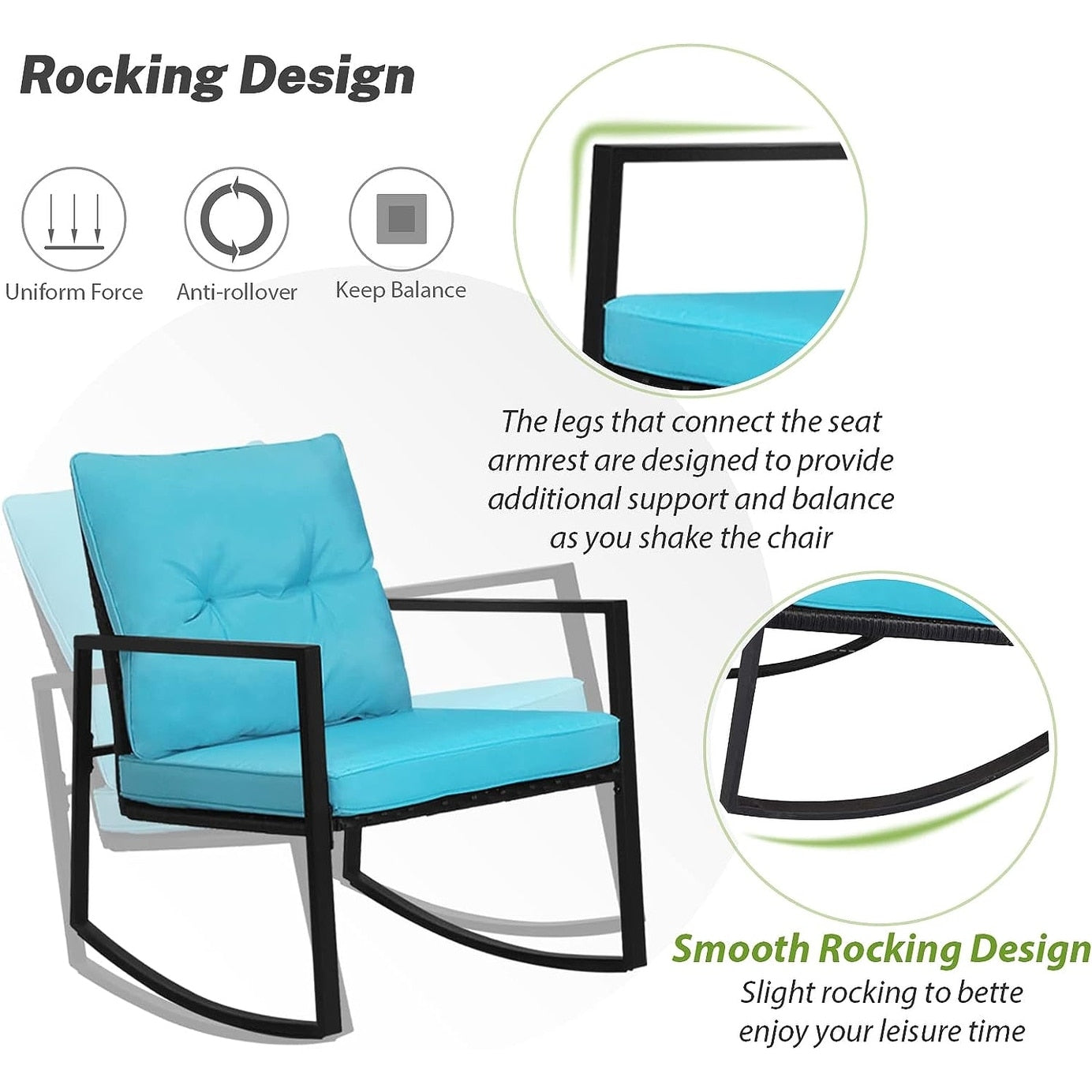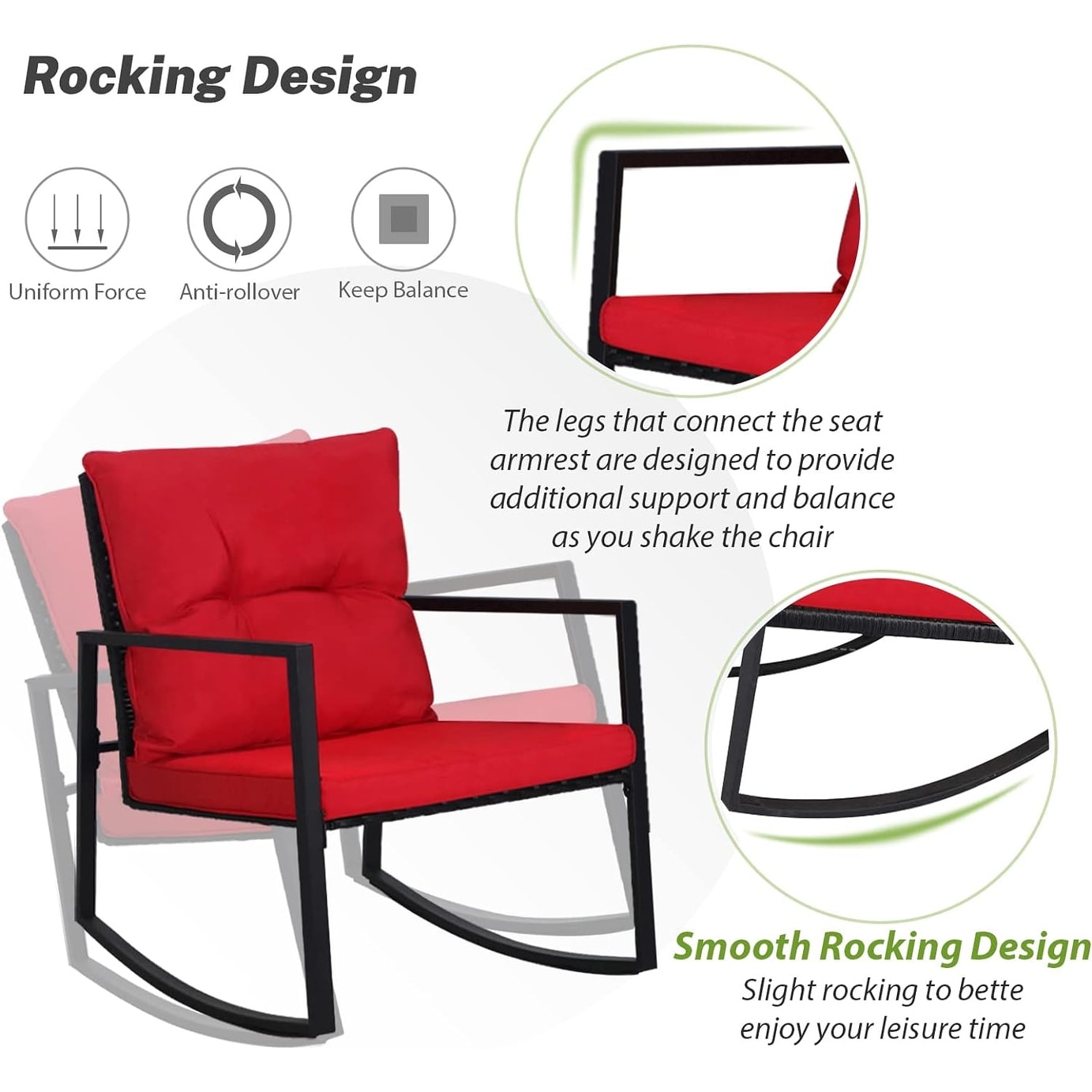 • Comprend 2 chaises à bascule et 1 table basse
