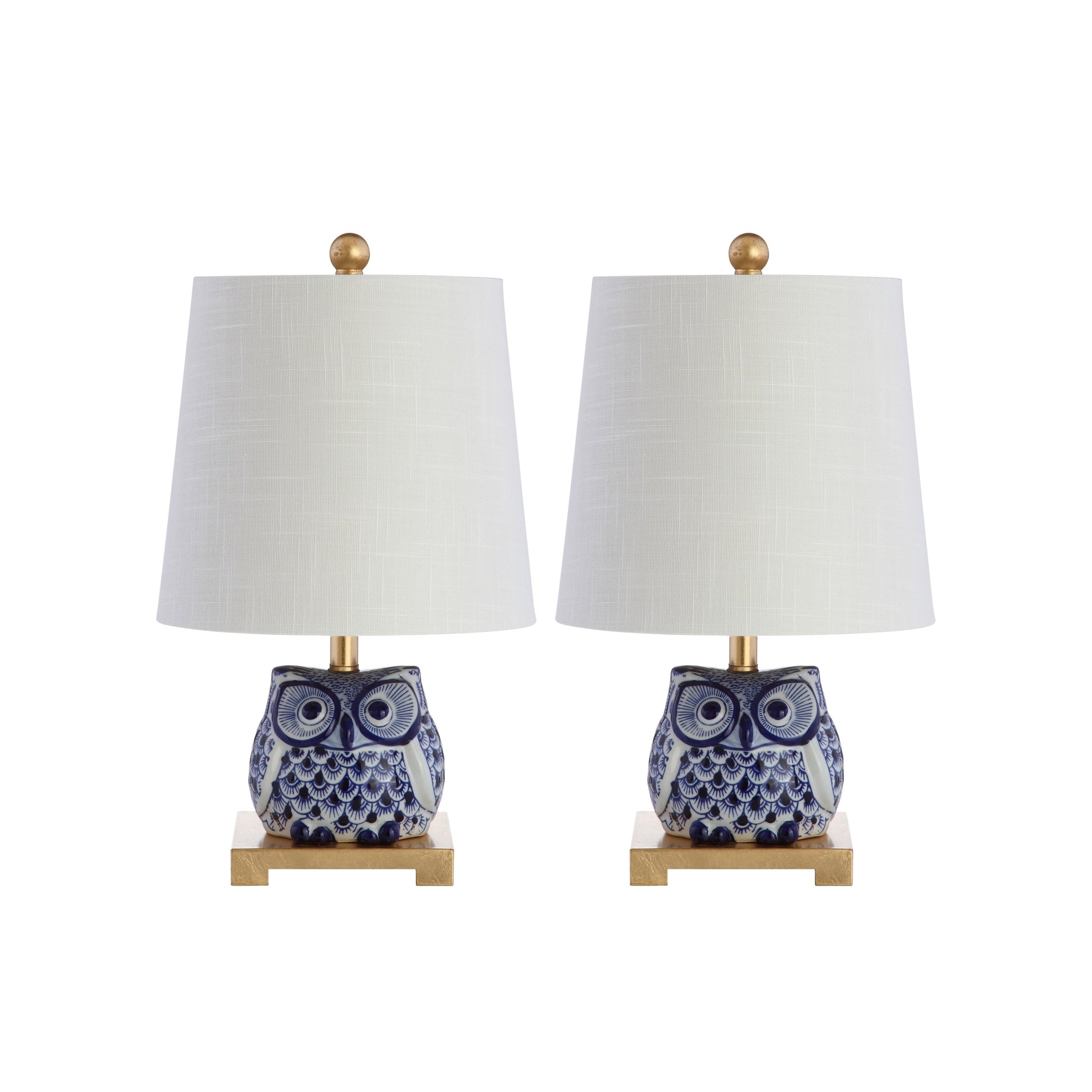 Mini lampe de table en céramique Tiki 16, bleu/blanc (lot de 2) par JONATHAN Y