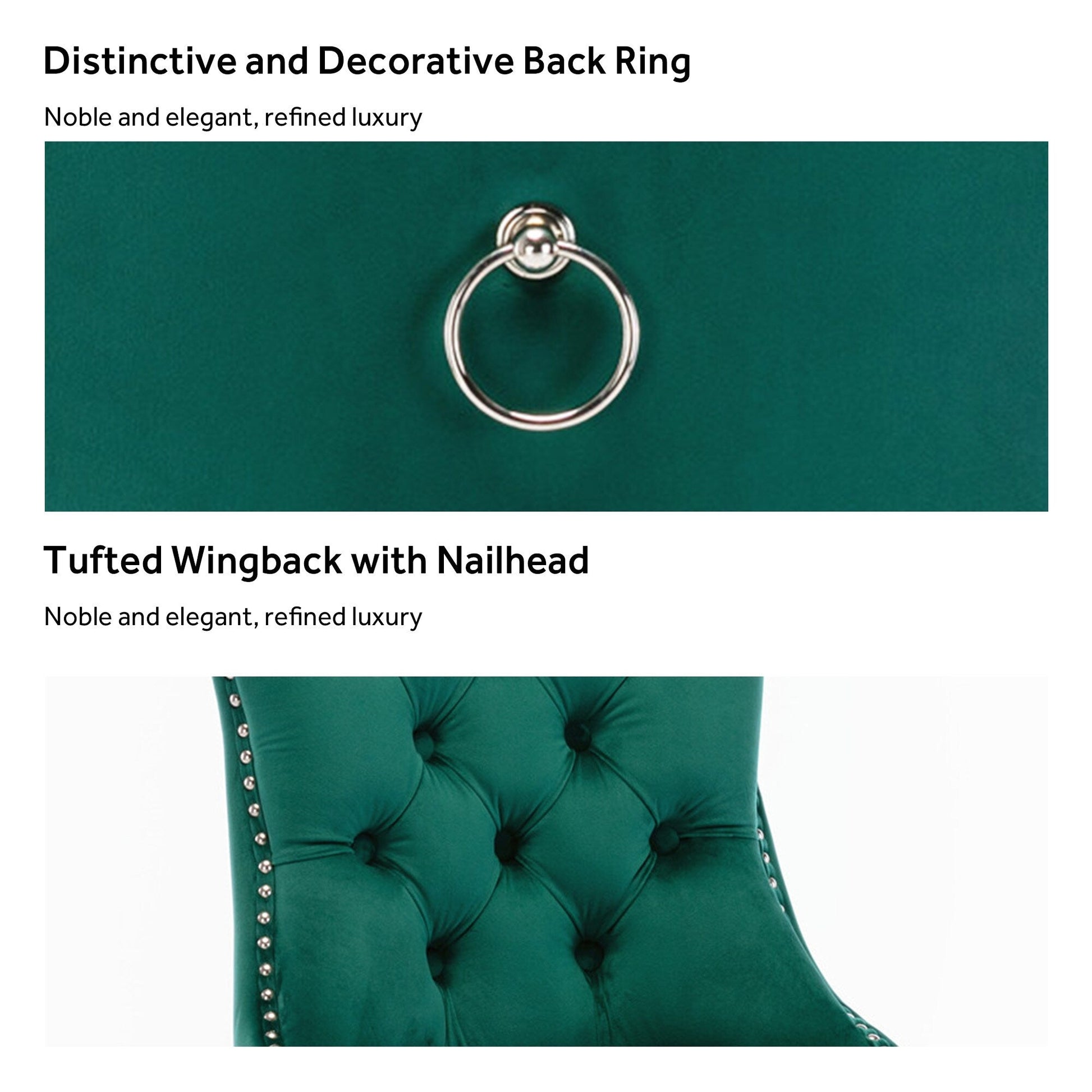 Ces chaises de salle à manger à oreilles sont fabriquées en velours de haute qualité, très résistant à l'usure et à la décoloration. Épais et luxueux, ce tissu offre un toucher délicat. Cet ensemble de chaises en velours arbore un style Mid-Century très moderne. Son dossier haut offre un soutien confortable et solide. De nombreux rivets décoratifs ornent le coussin et le dossier, lui conférant noblesse et élégance, tout en lui conférant une sensation de luxe raffiné. Nous fournissons des instructions et des vidéos de montage. Pour toute question, n'hésitez pas à nous contacter.
