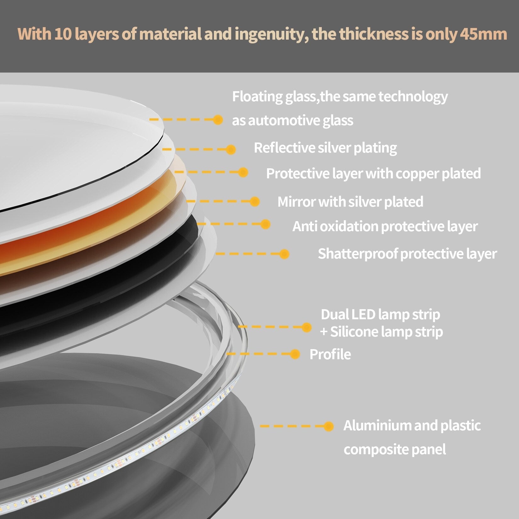 - Miroir argenté HD et miroir étanche IP65