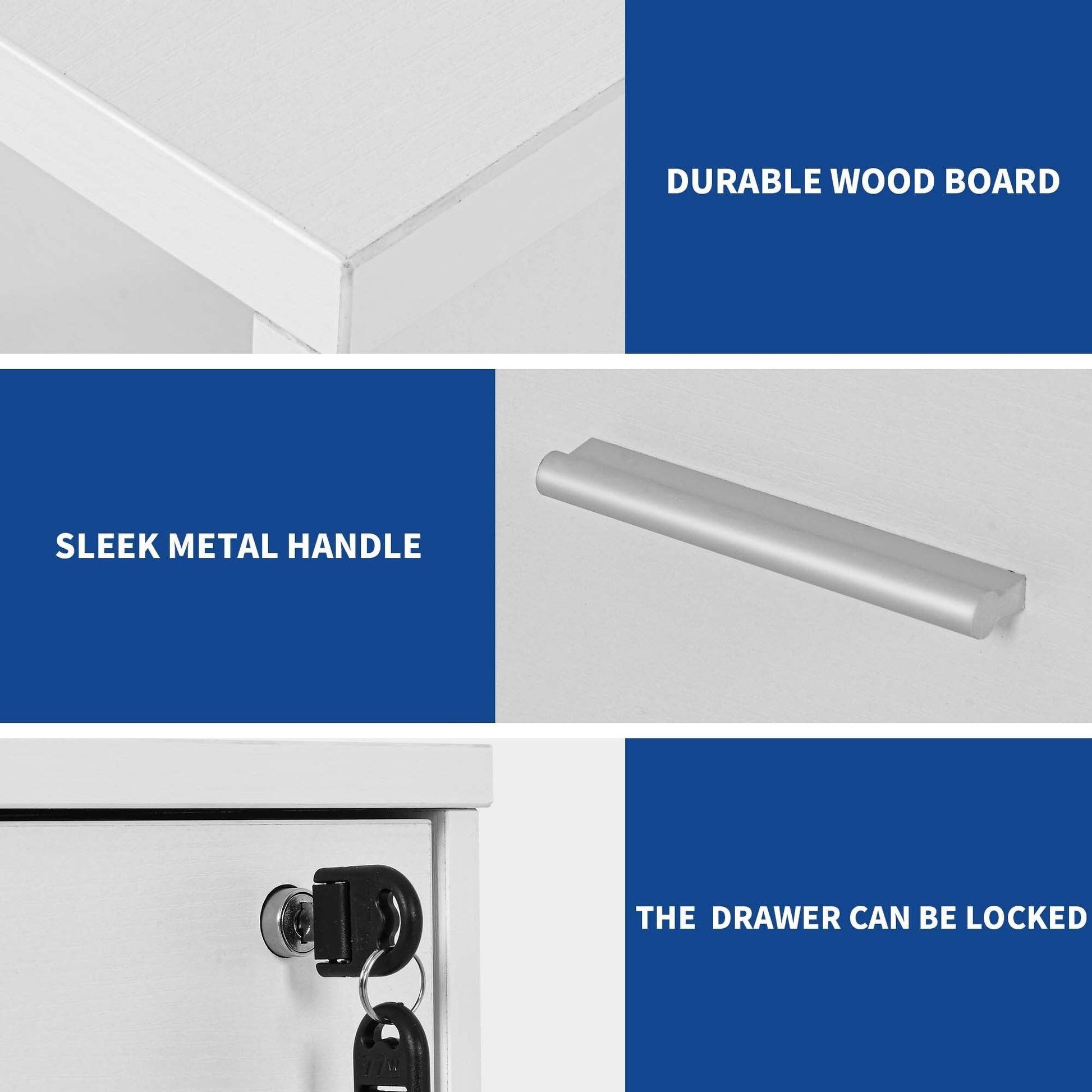 Vous recherchez un meuble de rangement de bureau polyvalent et élégant pour recharger vos appareils, ranger vos dossiers et organiser votre espace ? Alors, vous adorerez ce classeur en bois avec prises et ports USB. Il est doté de 3 tiroirs et d'étagères ouvertes ajustables selon vos besoins. Ses roulettes permettent de le déplacer facilement et de le bloquer grâce aux freins. Le tiroir inférieur peut accueillir des dossiers de différentes tailles, tandis que le tiroir supérieur est verrouillable pour plus d'intimité. Mieux encore, ce meuble est équipé de 2 prises et de 2 ports USB pour alimenter facilement votre imprimante, lampe, téléphone, iPad, ordinateur portable et bien plus encore. Ce classeur en bois est la solution idéale pour la maison ou le bureau.